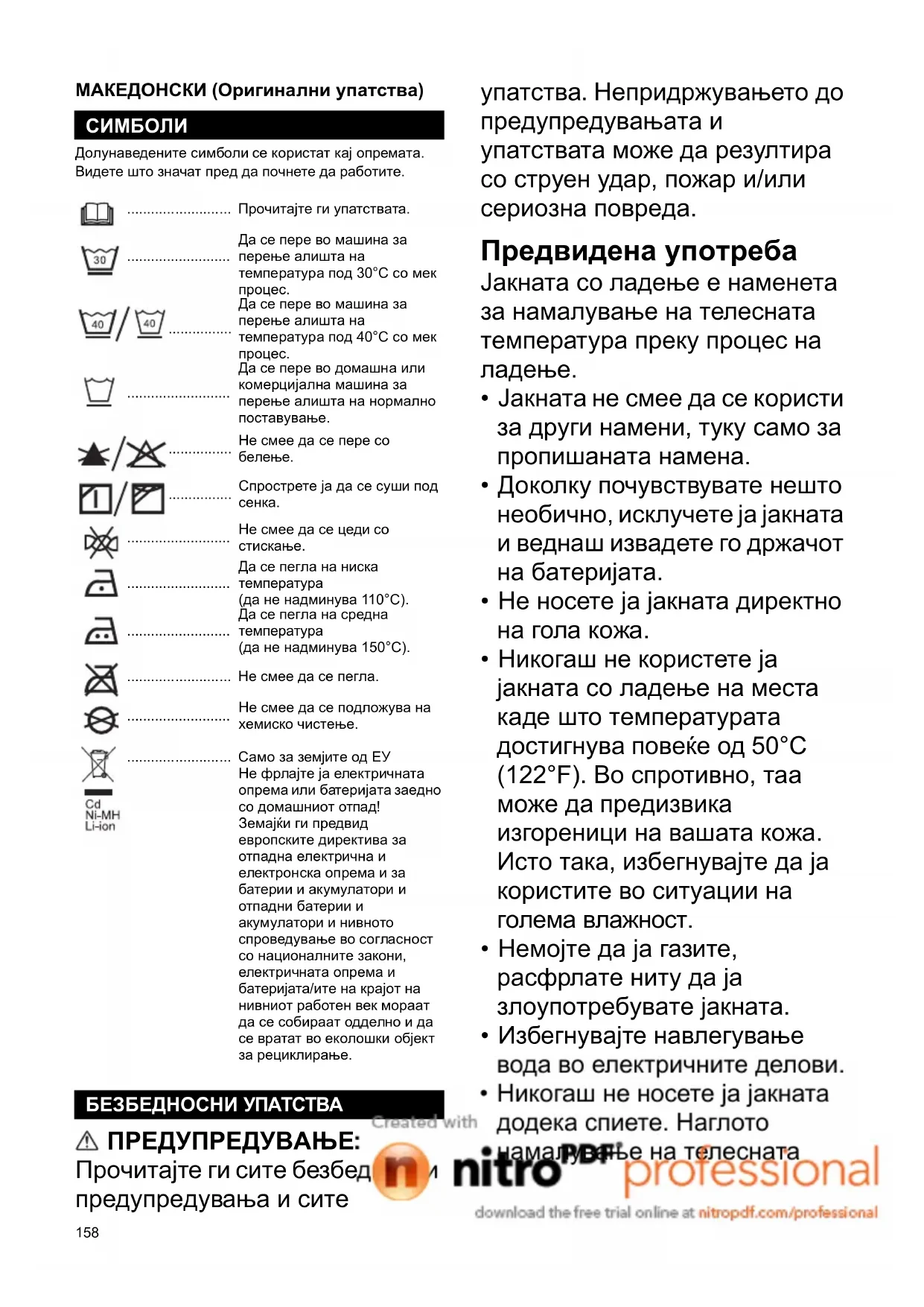 - Јакната не смее да се користи за други намени, туку само за пропишаната намена.