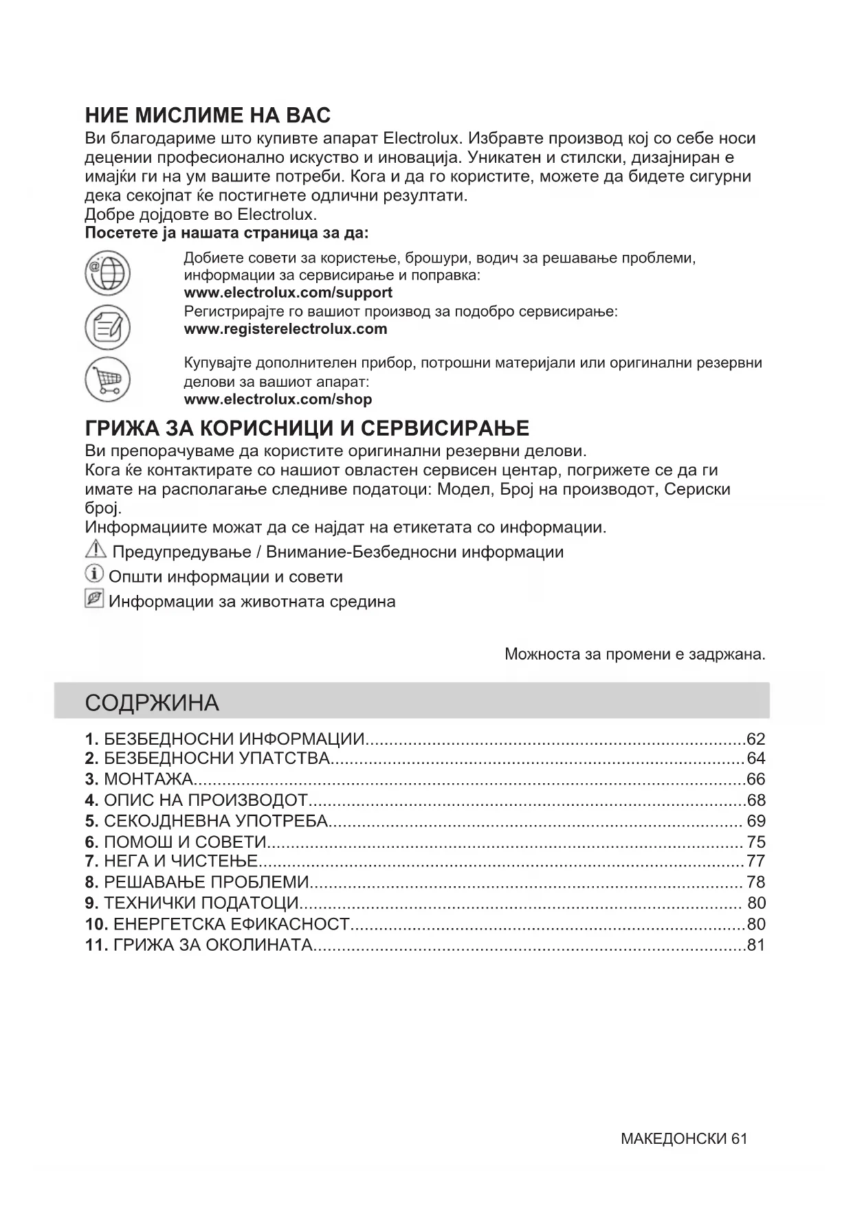 Информациите можат да се најдат на етикетата со информации. Предупредување / Внимание-Безбедносни информации Општи информации и совети Информации за животната средина Можноста за промени е задржана.