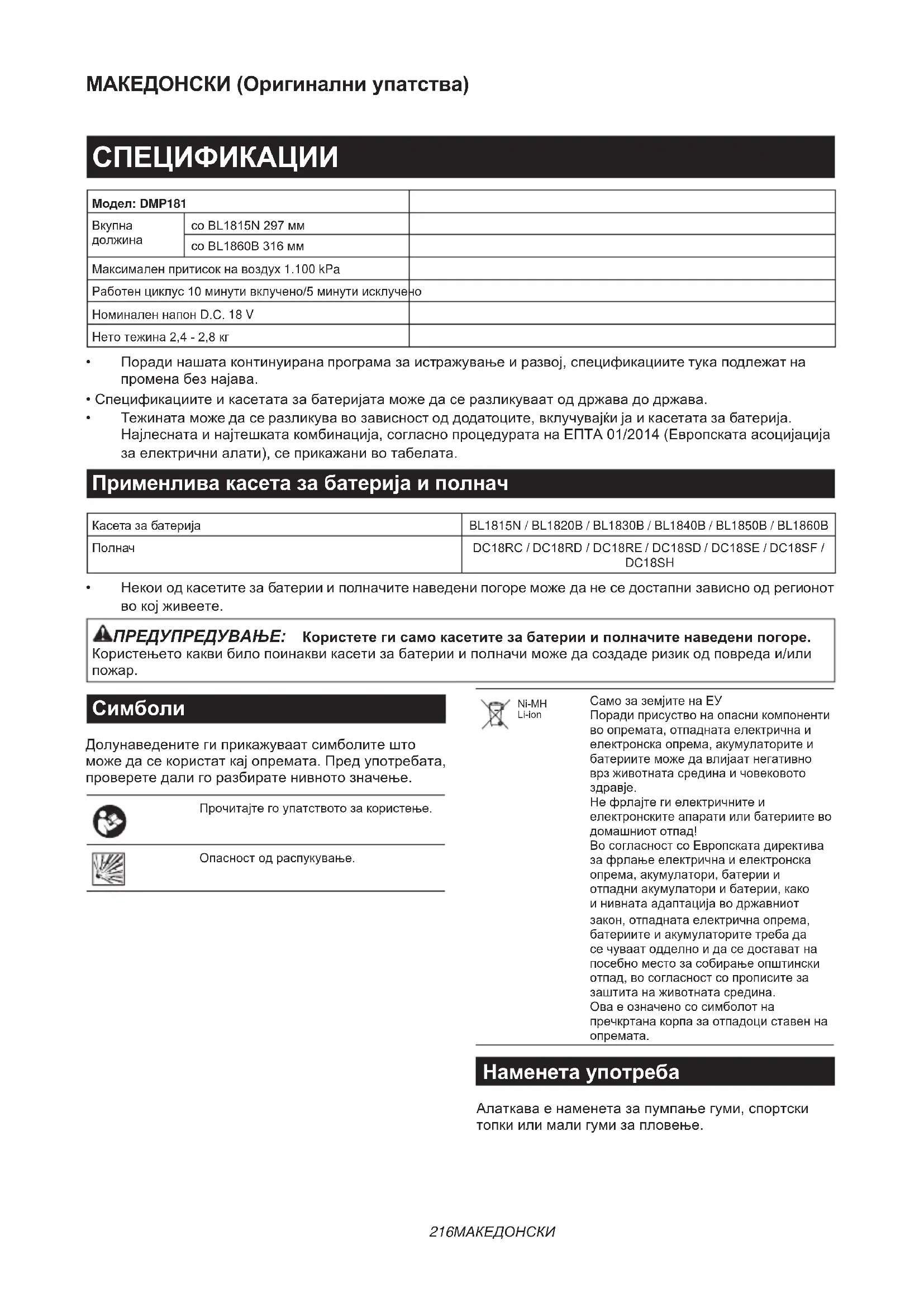 КОРИСНИЧКИ ПРИРАЧНИК DMP180Z MAKITA