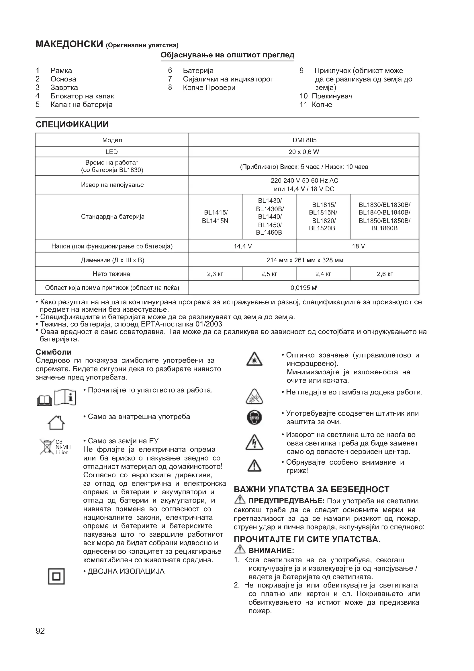 DML805 - ламба MAKITA - Бесплатен кориснички прирачник
