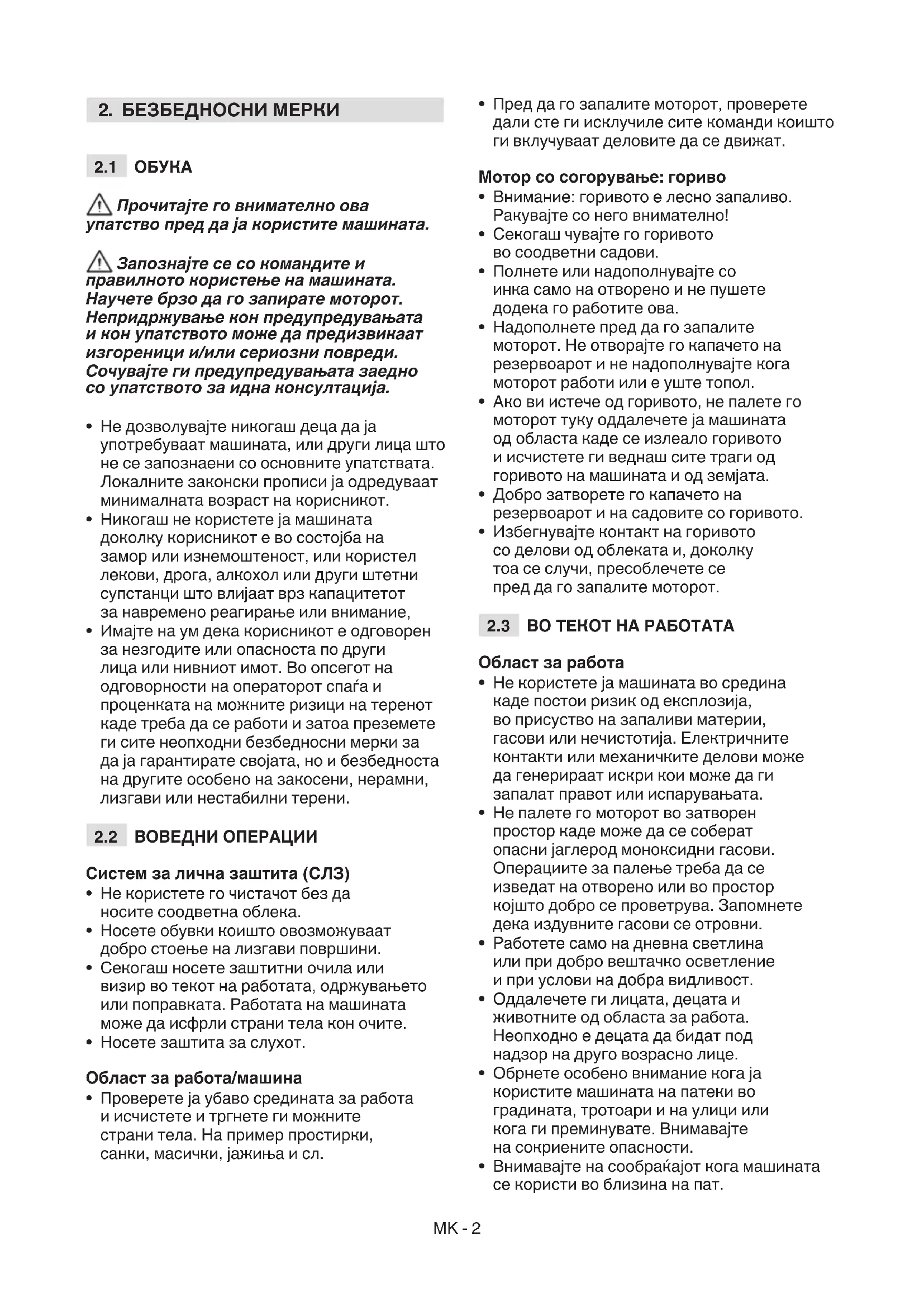 - Внимавајте на сообраќајот кога машината се користи во близина на пат.MK - 3