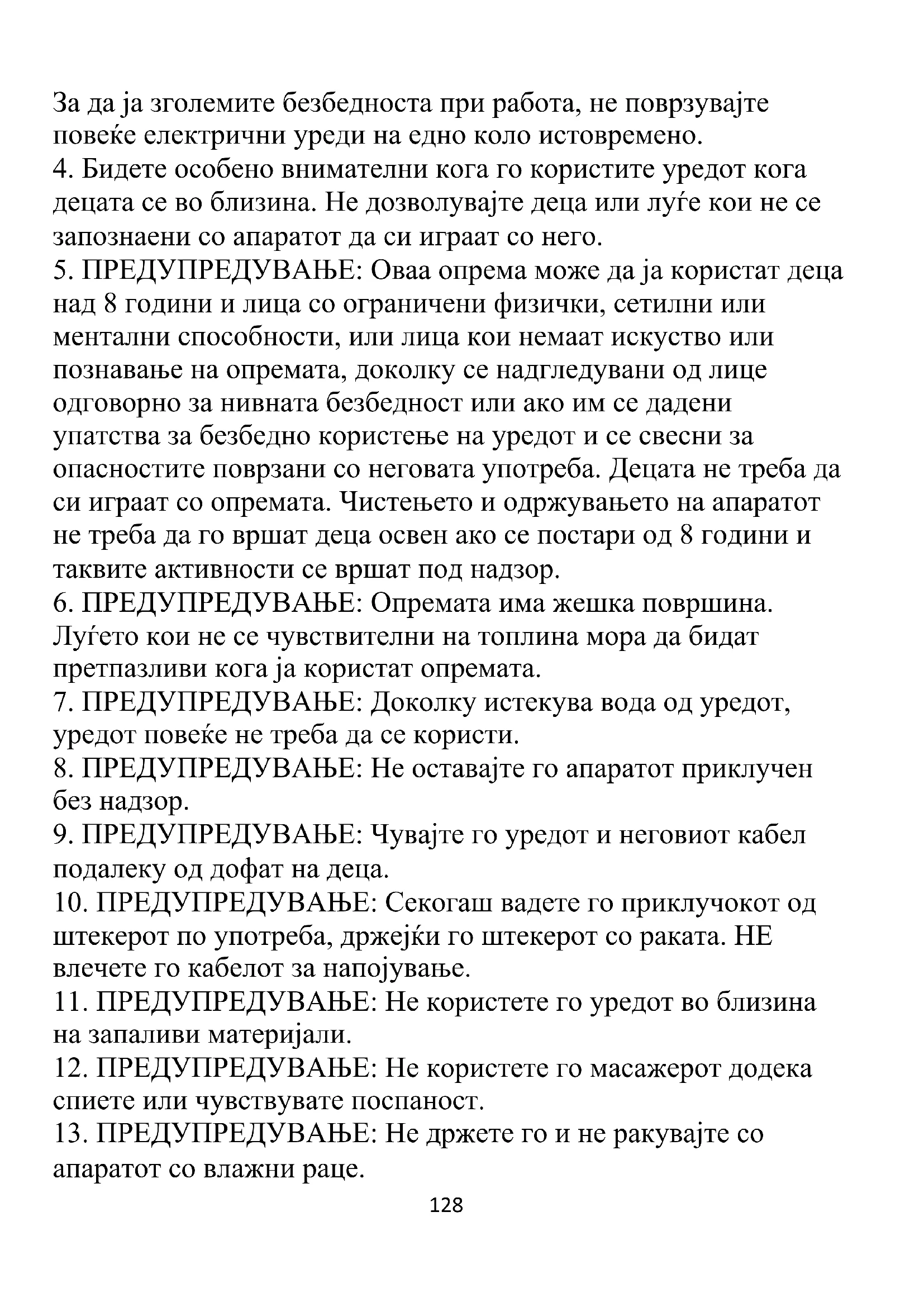 12. ПРЕДУПРЕДУВАЊЕ: Не користете го масажерот додека
