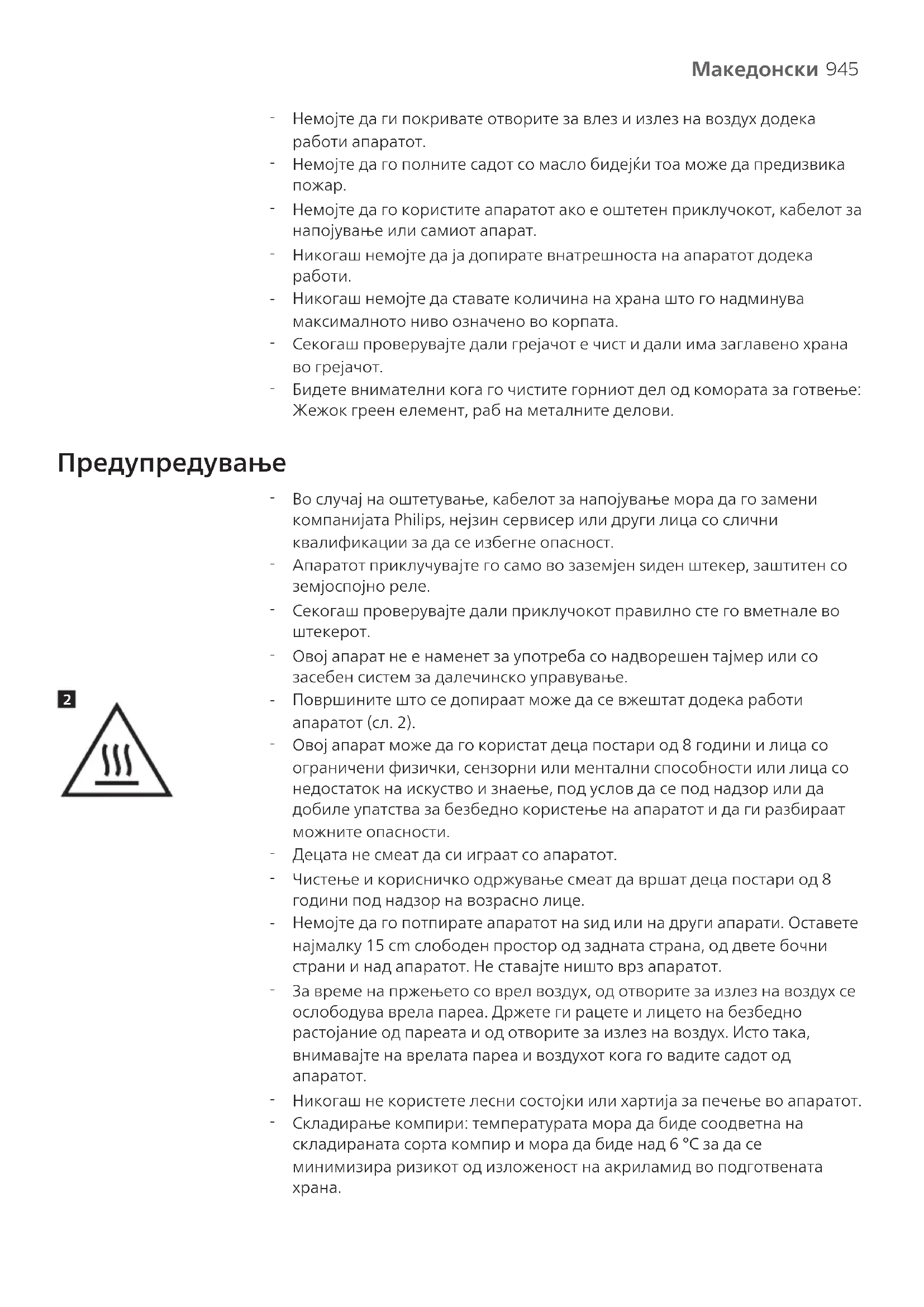 Ако апаратот е вклучен подолго време, некои делови стануваат врели на допир. Овие делови на уредот се обележани со следната икона: Ако имате предвид дека одредени површини се вжештуваат и не ги допирате, апаратот е безбеден за