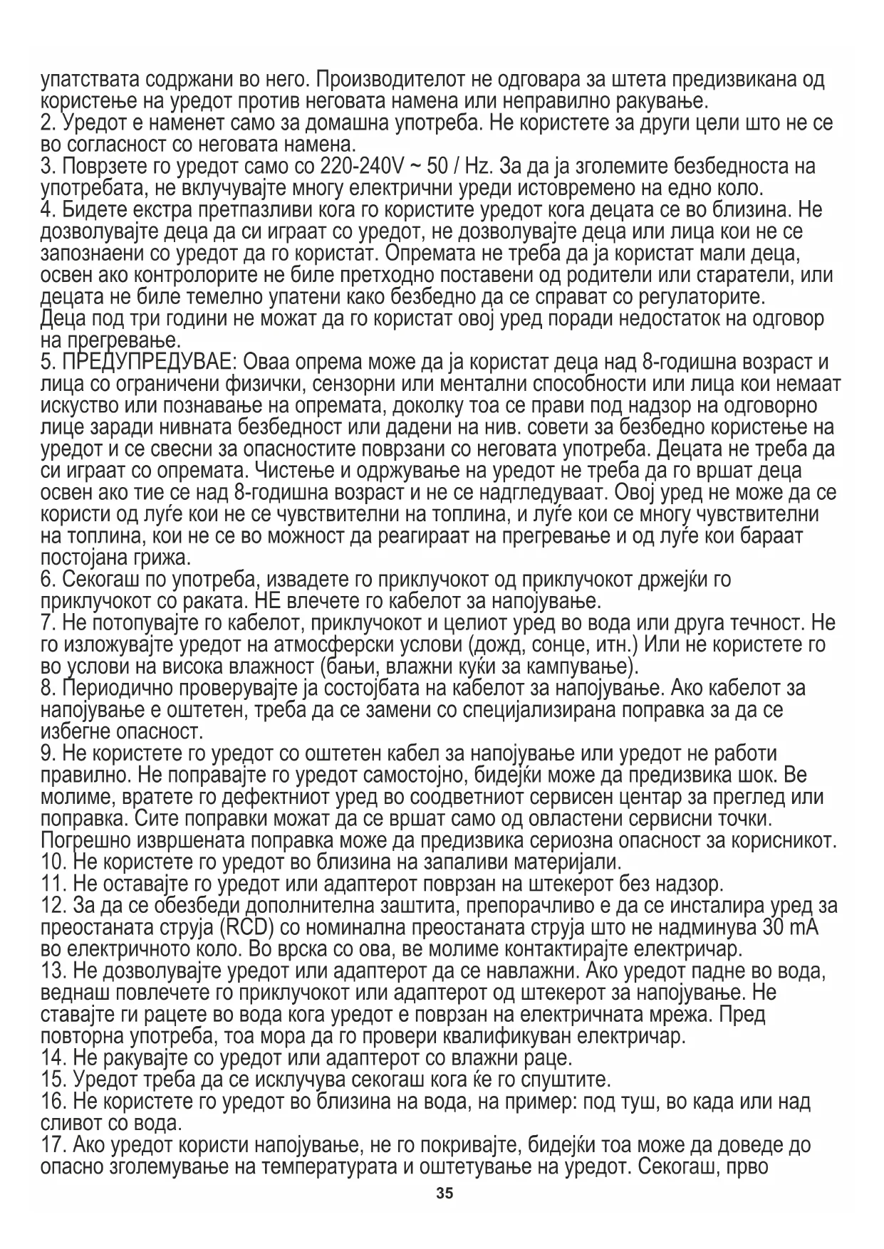 1. Прочитајте го упатството за употреба пред да го користите уредот и следете ги35