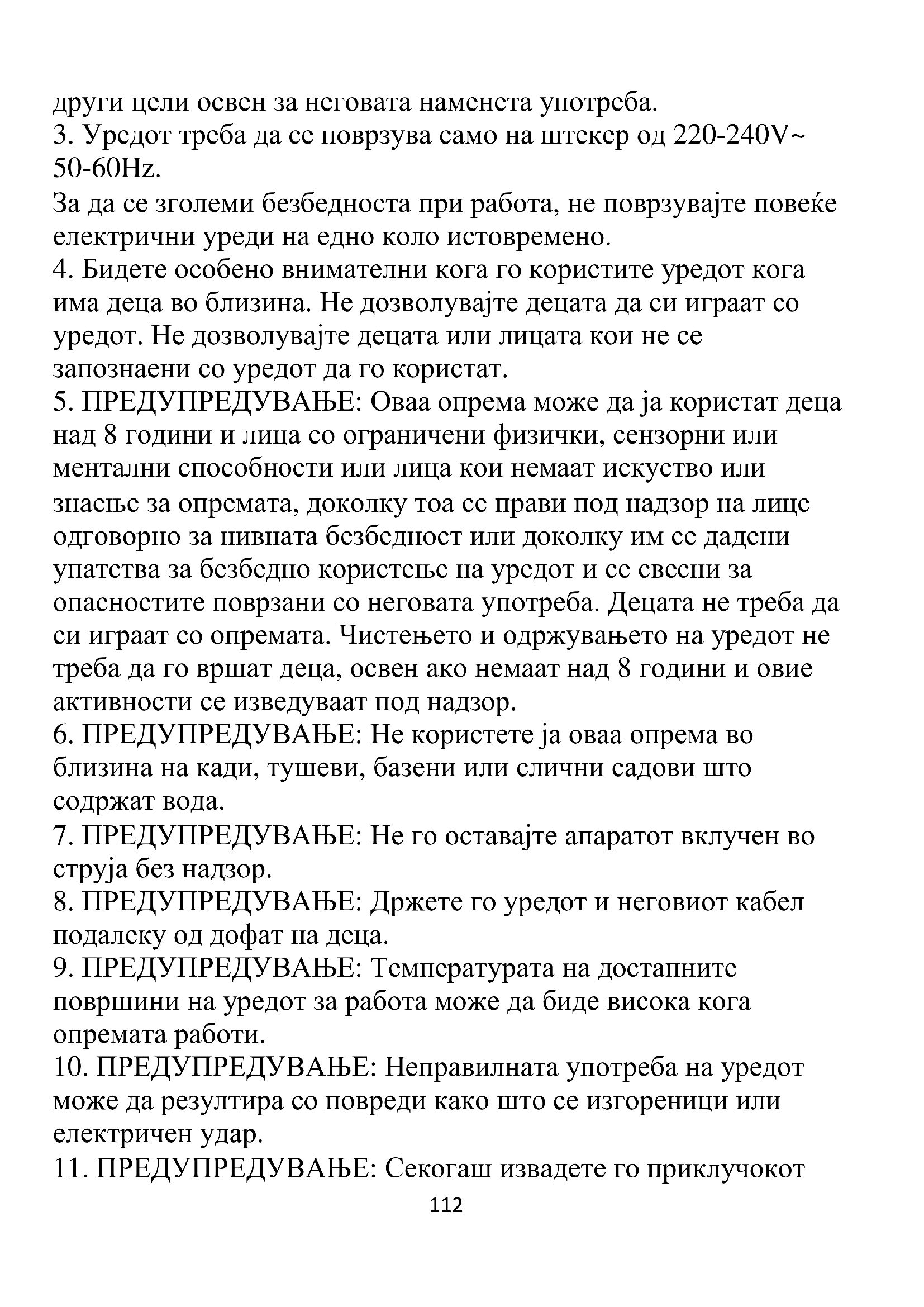 12. ПРЕДУПРЕДУВАЊЕ: Не го користете уредот во близина