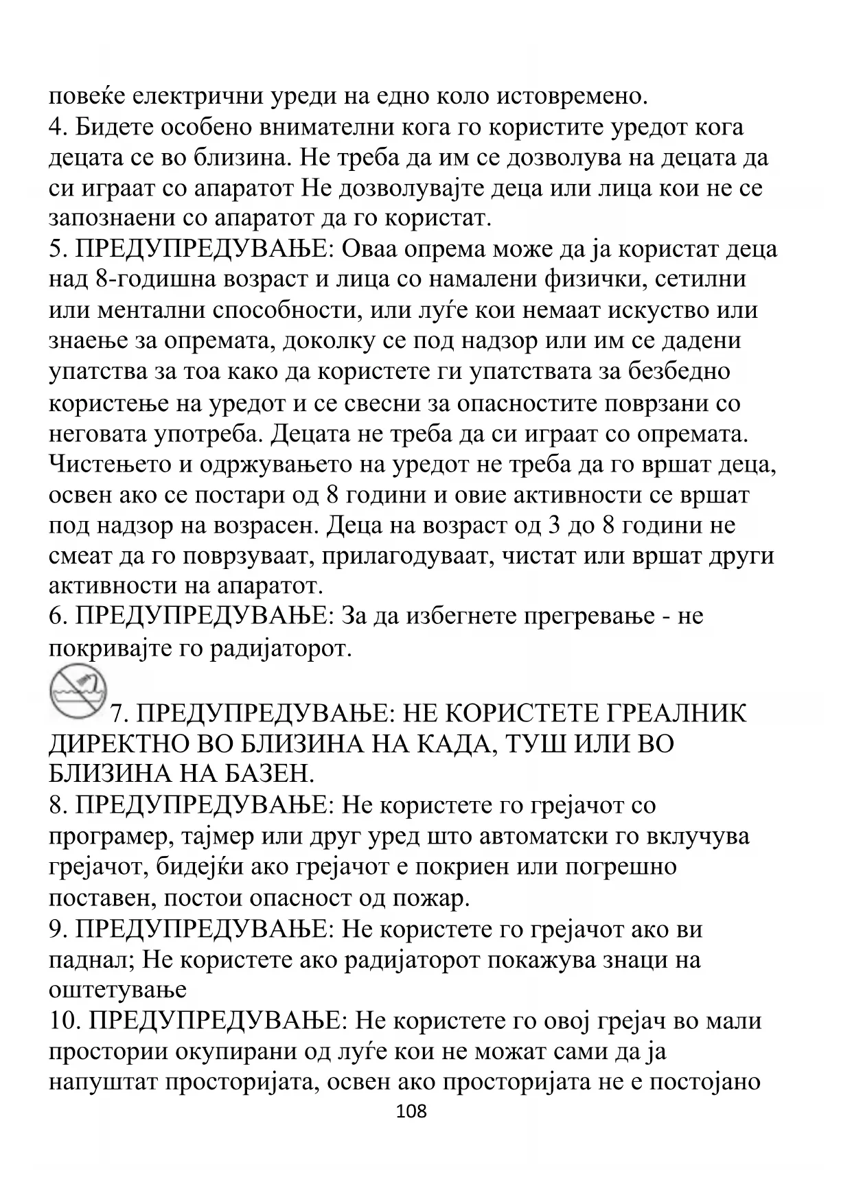 10. ПРЕДУПРЕДУВАЊЕ: Не користете го овој грејач во мали