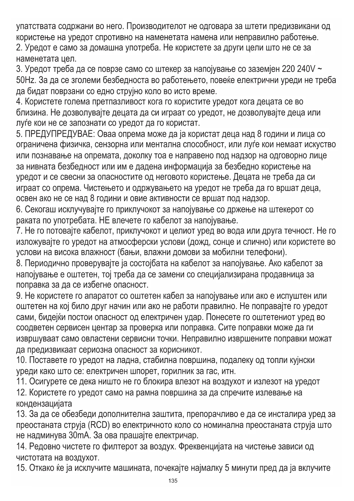 50Hz. За да се зголеми безбедноста во работењето, повеќе електрични уреди не треба да бидат поврзани со едно струјно коло во исто време.