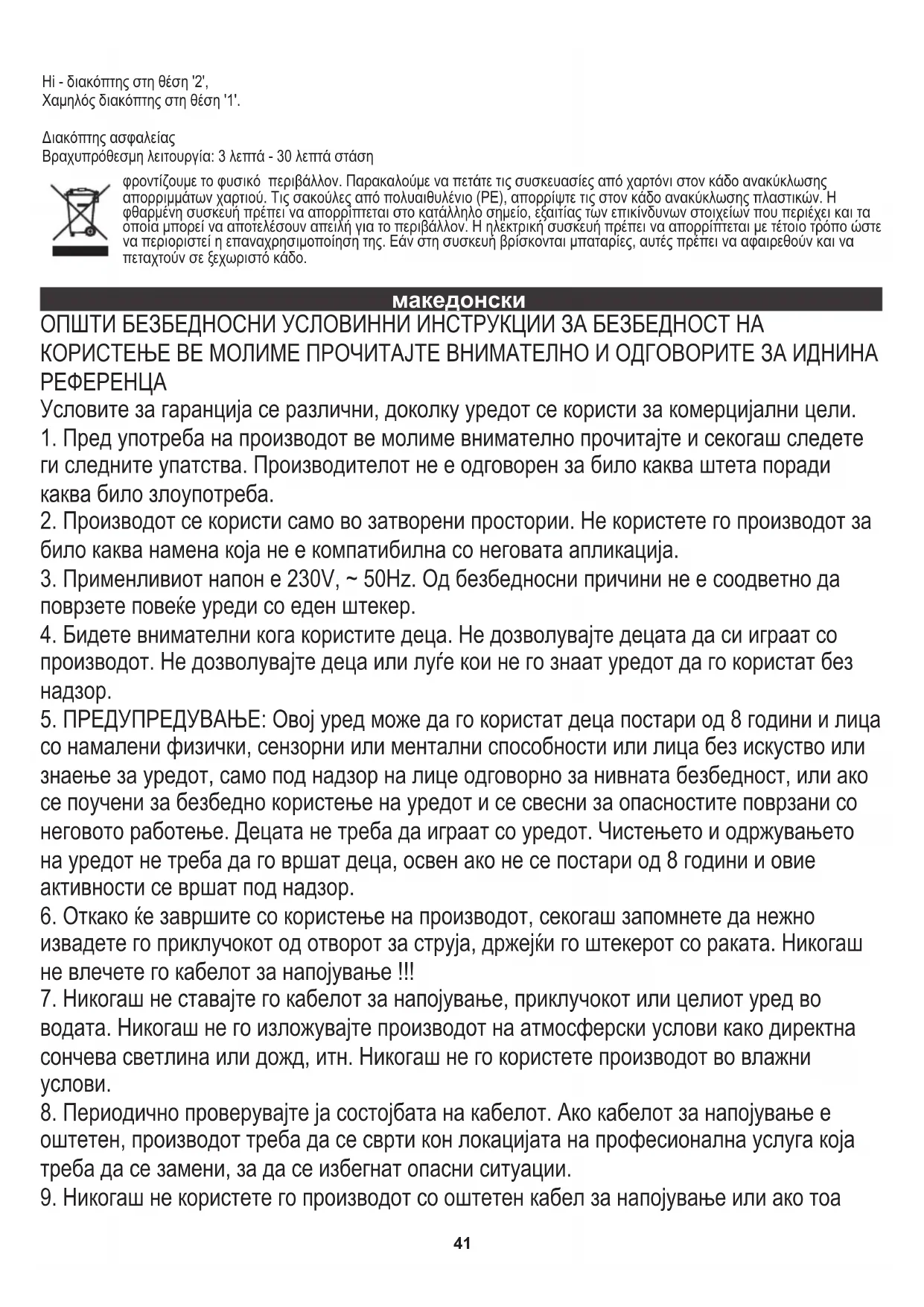 5. ПРЕДУПРЕДУВАЊЕ: Овој уред може да го користат деца постари од 8 години и лица