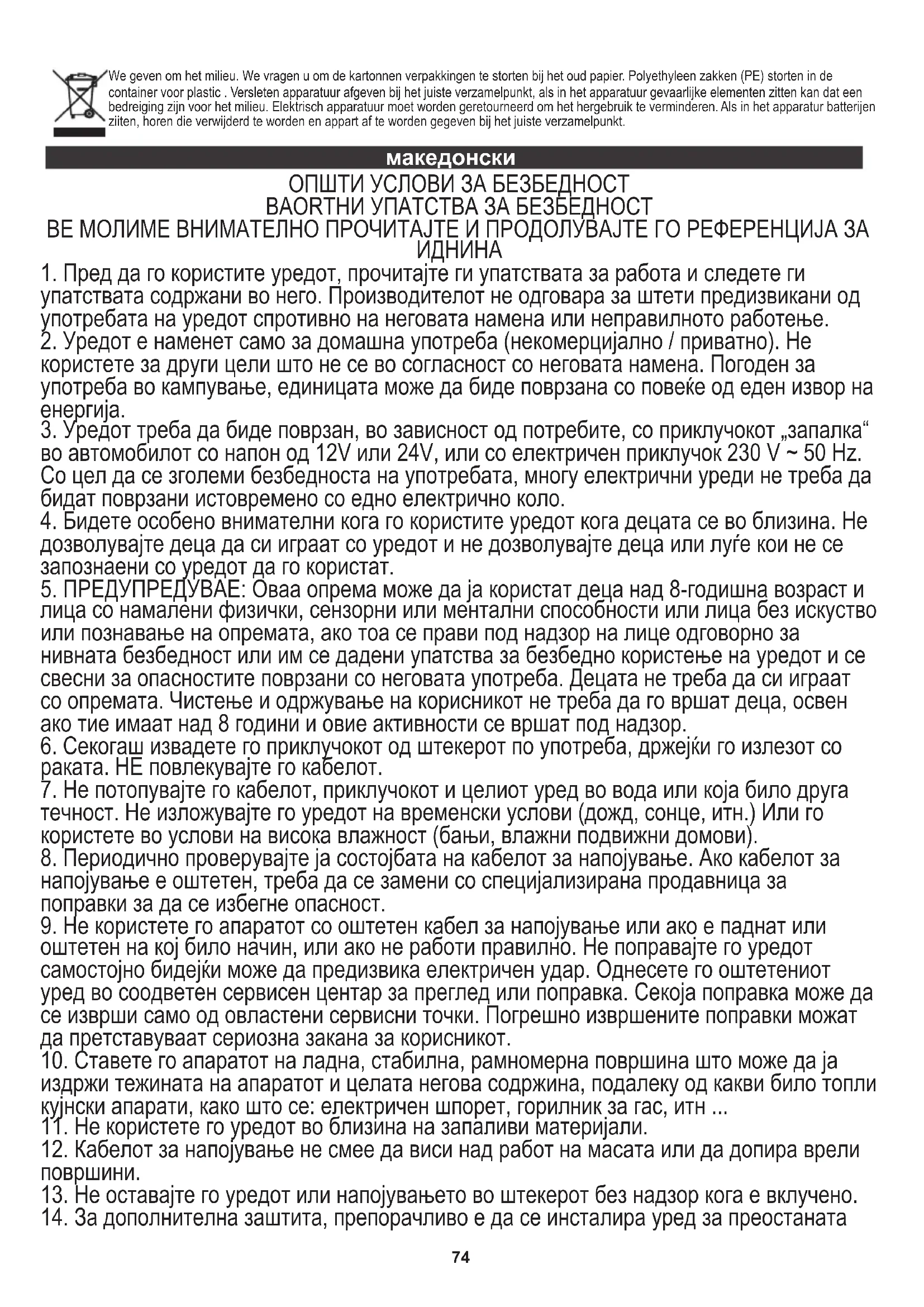1. Пред да го користите уредот, прочитајте ги упатствата за работа и следете ги