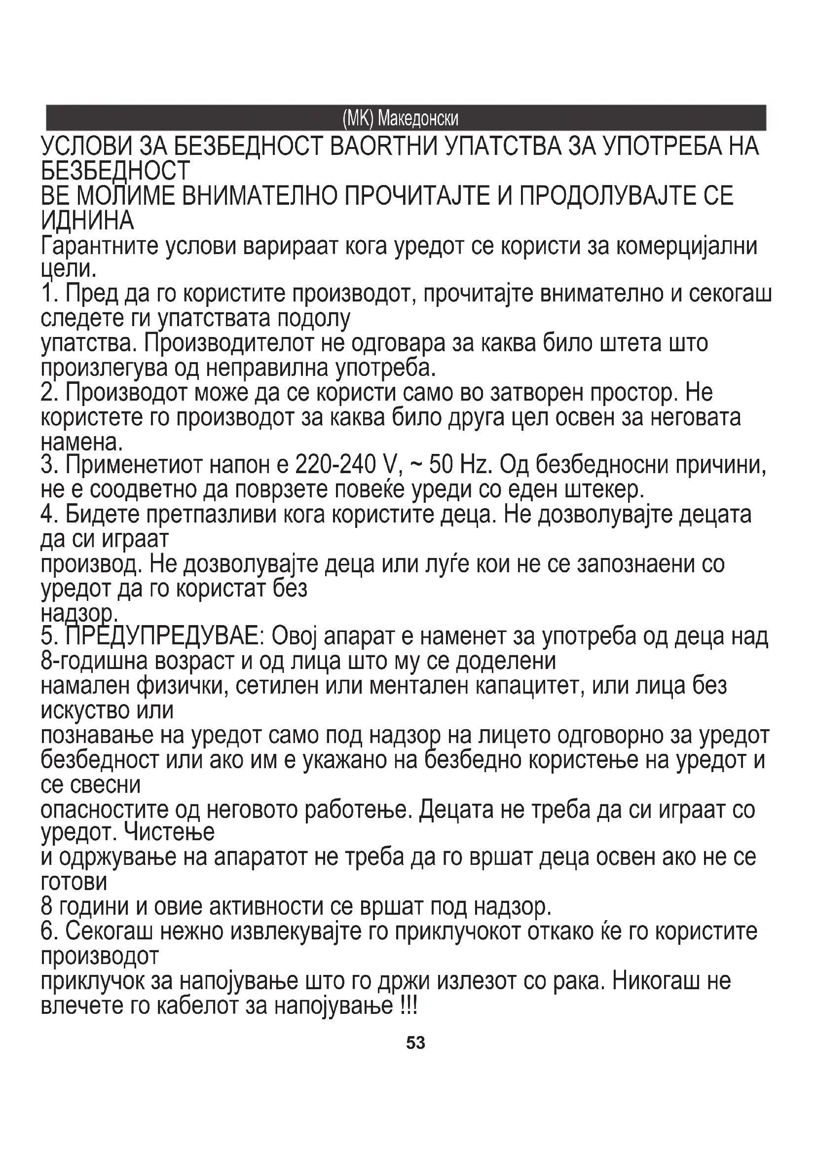 5. ПРЕДУПРЕДУВАЕ: Овој апарат е наменет за употреба од деца над
