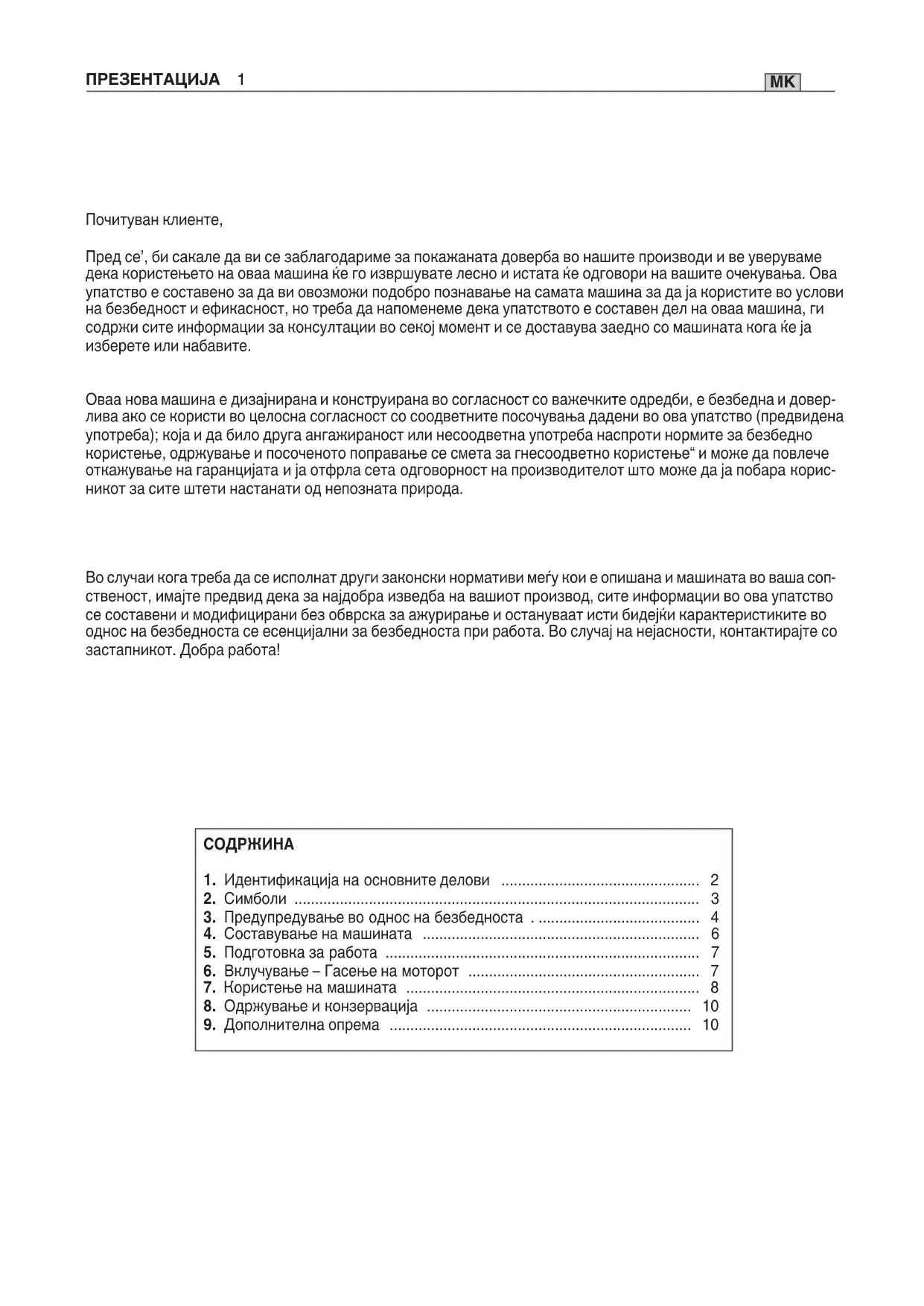 6. Вклучување – Гасење на моторот ........................................................ 7