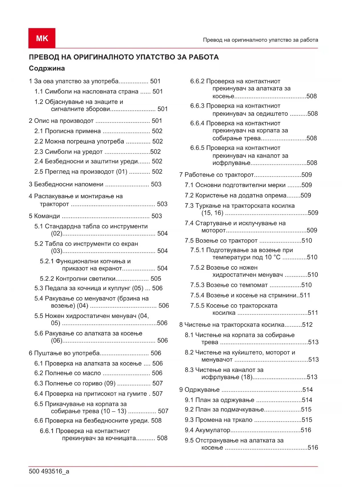 косење ...............................................516493516_a 501 За ова упатство за употреба