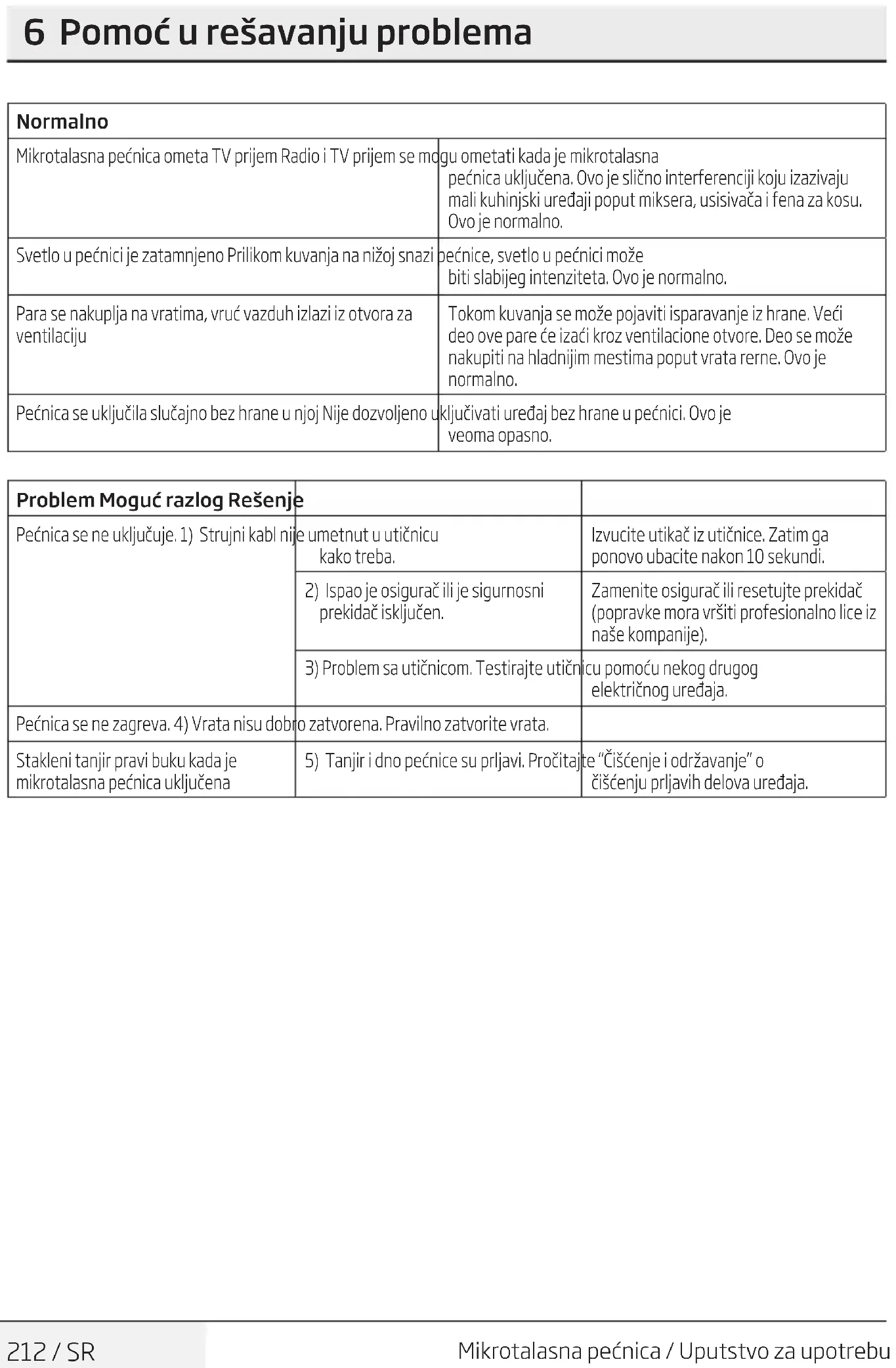 Не сносиме никаква од- говорност и гаранцијата нема да важи ако наста- нат оштетувања поради погрешна употреба или неисправно ракување со апаратот.Микробранова печка / Упатство за употреба 216 / MK