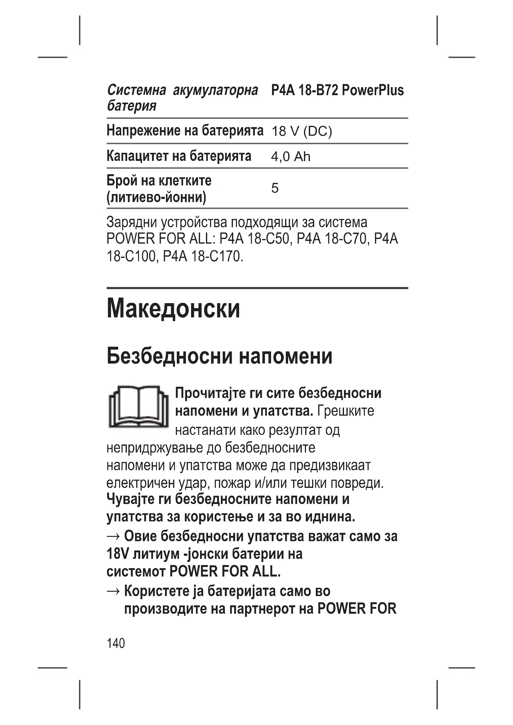 Внимавајтенапрепоракитезабатеријата воупатствотозакористењенавашиот производ.Самонатојначинбатеријатаи производотможатбезбеднодасеракуваати батериитедасезаштитатодопасно преоптоварување.
