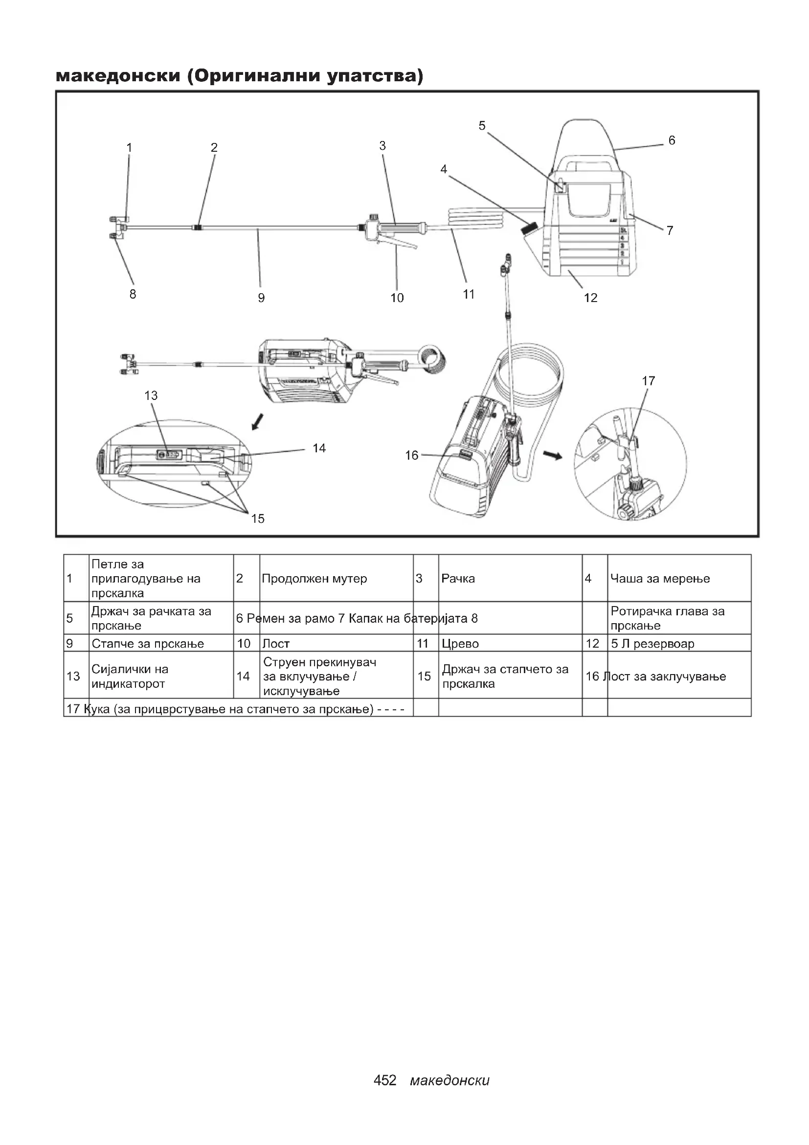 16 Лост за заклучување 17 Кука (за прицврстување на стапчето за прскање) - - - -453