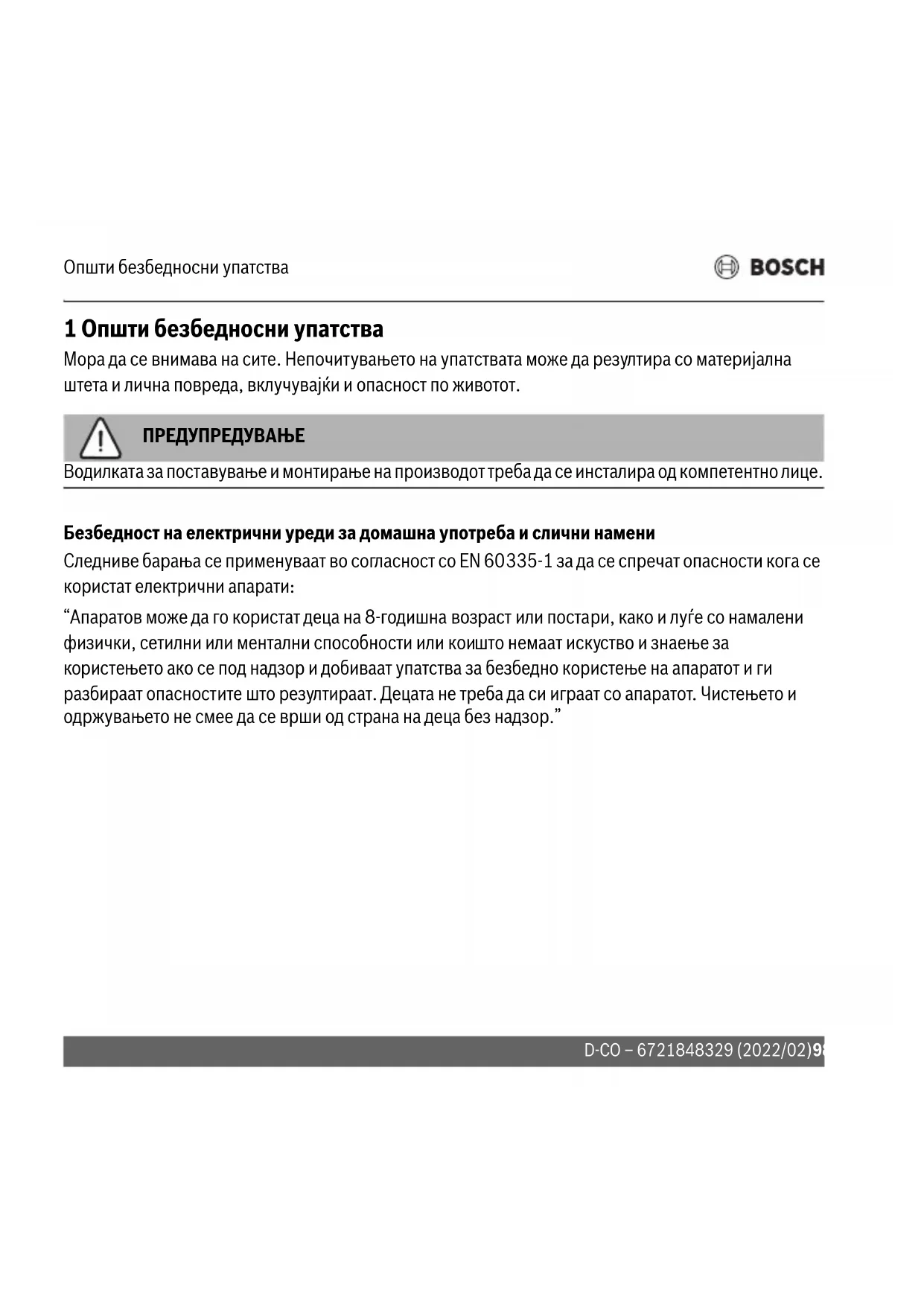 КОРИСНИЧКИ ПРИРАЧНИК D-CO BOSCH