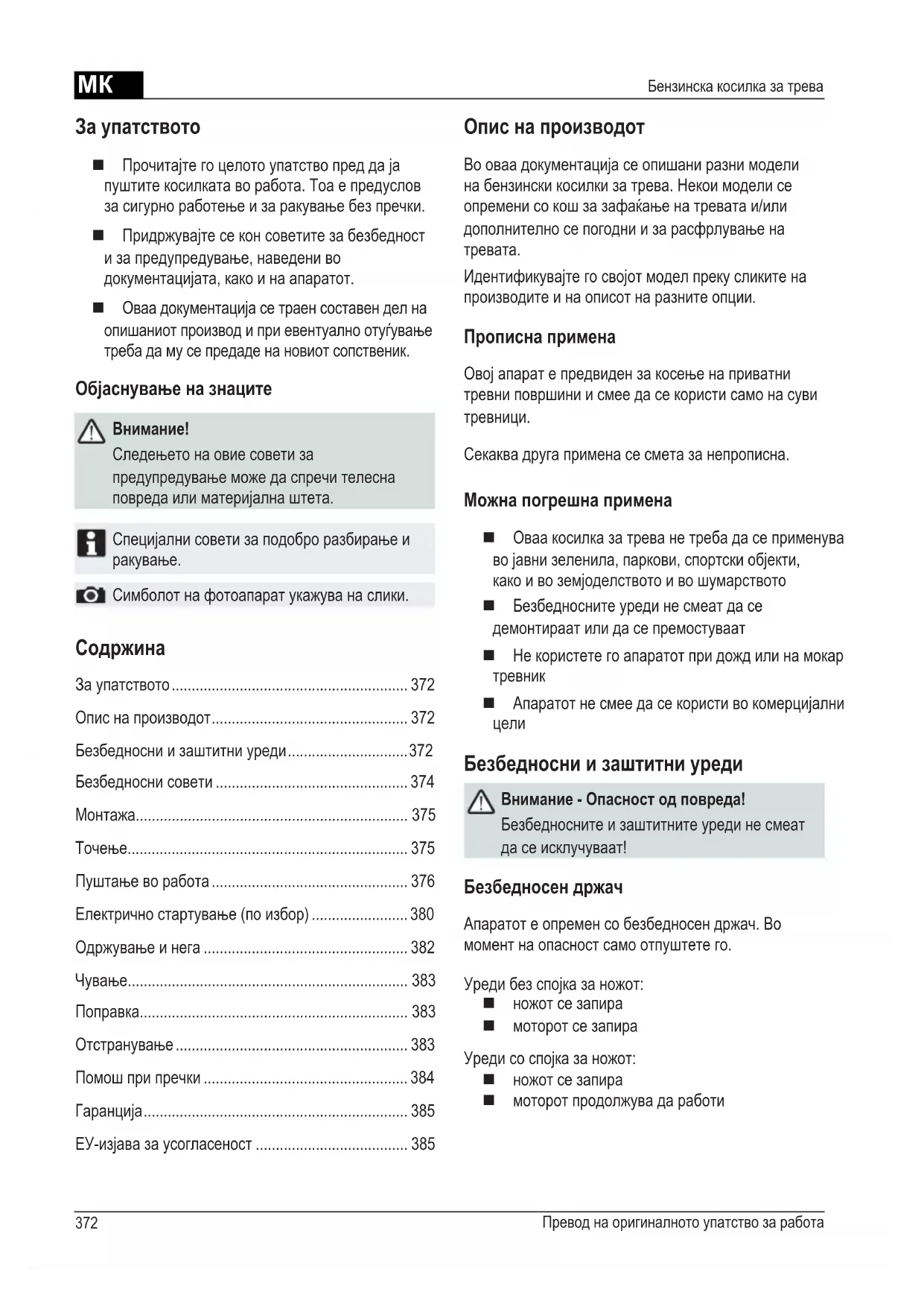 Придржувajte се кон упатCBATAHa npov3BODNTeNT Ha MOTOPOT!