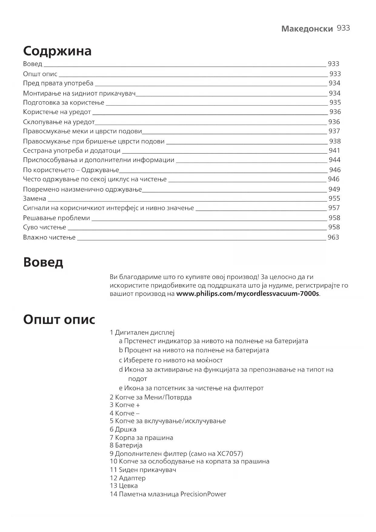Ви благодариме што го купивте овој производ! За целосно да ги искористите придобивките од поддршката што ја нудиме, регистрирајте го вашиот производ на www.philips.com/mycordlessvacuum-7000s.