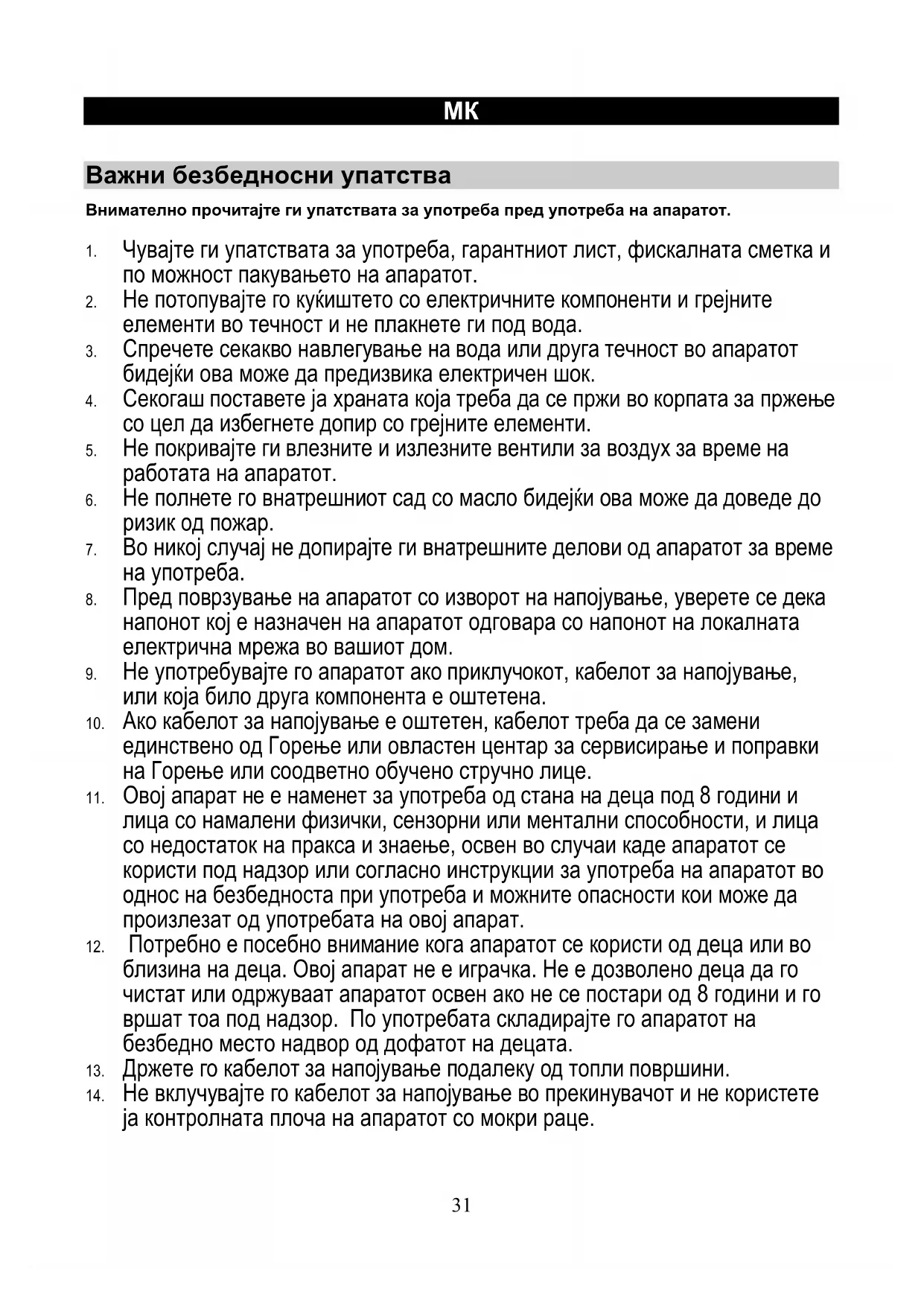 Важни безбедносни упатства Внимателно прочитајте ги упатствата за употреба пред употреба на апаратот.