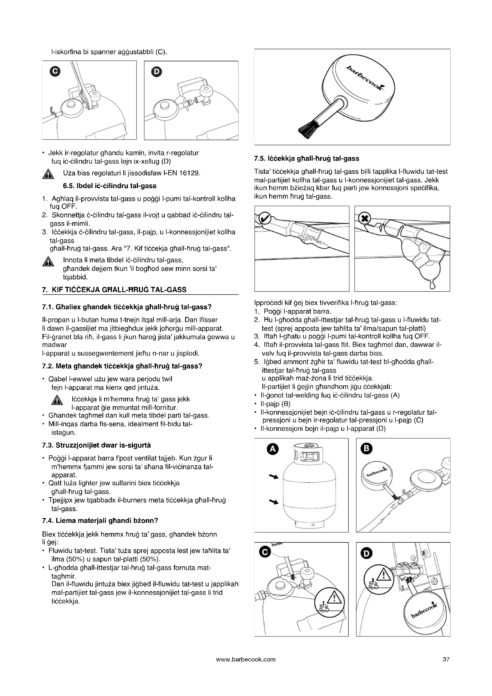 negozjant ta' Barbecook. M'għandekx tibda tuża l-apparat qabel ma l-ħruġ tal-gass ikun ġie rranġat. Ara www.barbecook.com jew lista ta' negozjanti ta' Barbecook l-qrib tiegħek.