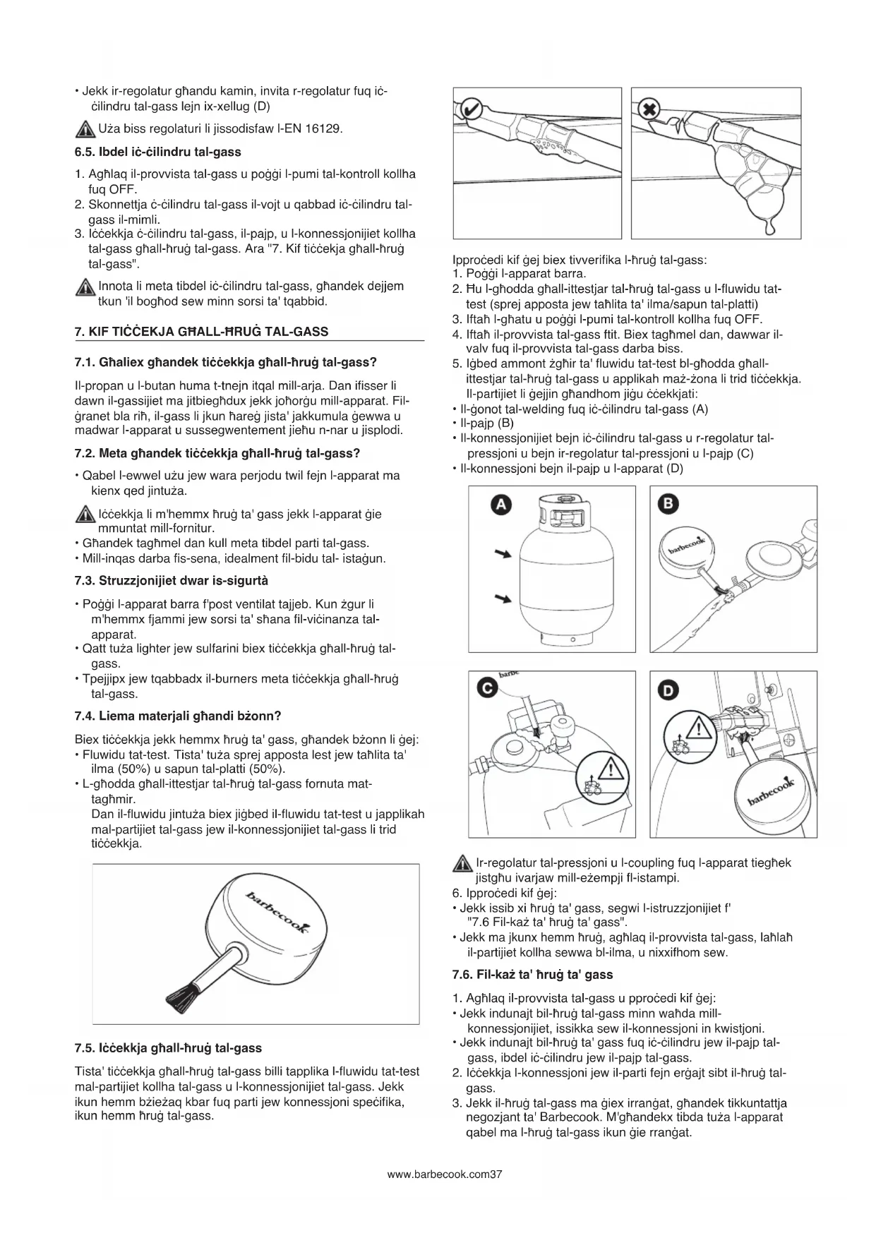 negozjant ta' Barbecook. M'għandekx tibda tuża l-apparat qabel ma l-ħruġ tal-gass ikun ġie rranġat. www.barbecook.com 37Ara www.barbecook.com jew lista ta' negozjanti ta' Barbecook l-qrib tiegħek.