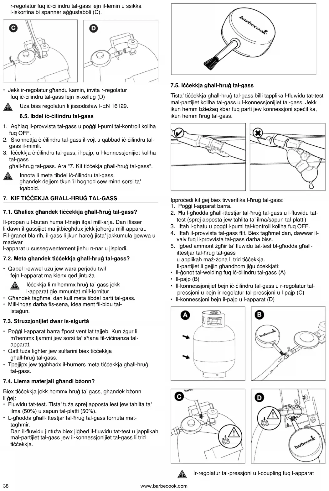 negozjant ta' Barbecook. M'għandekx tibda tuża l-apparat qabel ma l-ħruġ tal-gass ikun ġie rranġat. Ara www.barbecook.com jew lista ta' negozjanti ta' Barbecook l-qrib tiegħek.