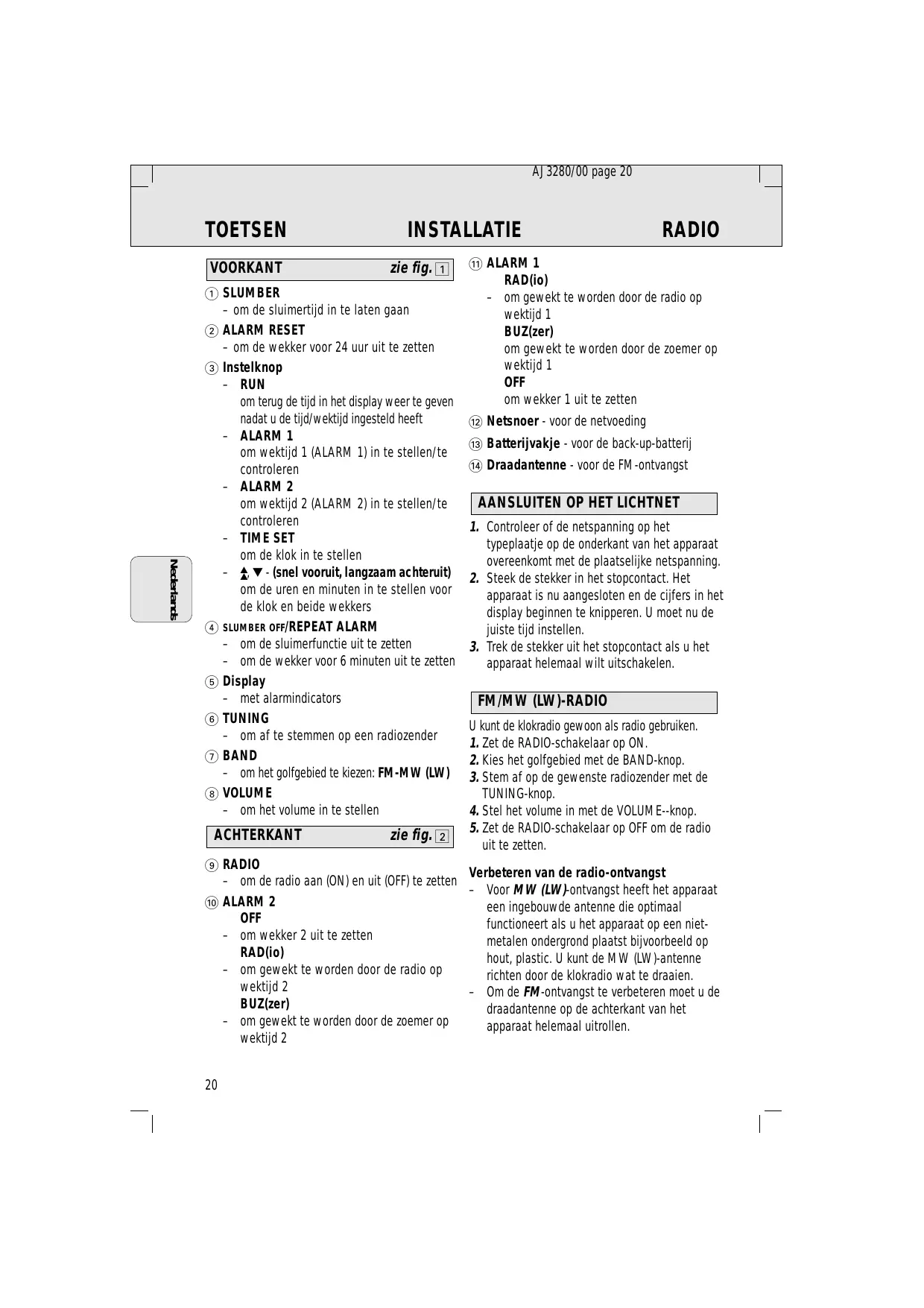 Download de handleiding voor uw Radiowekker in PDF-formaat gratis! Vind uw handleiding AJ3280 - PHILIPS en neem uw elektronisch apparaat weer in handen. Op deze pagina staan alle documenten die nodig zijn voor het gebruik van uw apparaat. AJ3280 van het merk PHILIPS.
