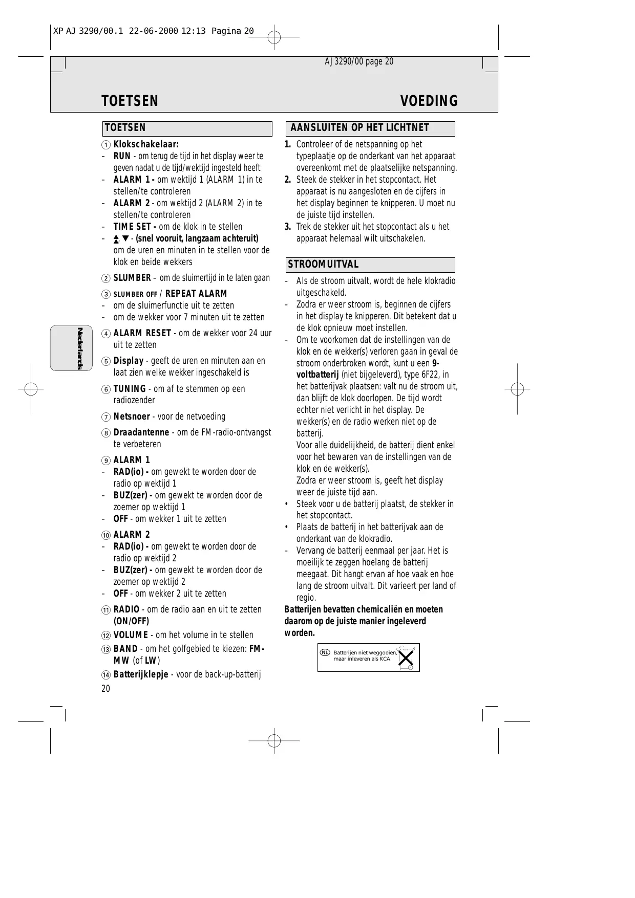 Download de handleiding voor uw Radiowekker in PDF-formaat gratis! Vind uw handleiding AJ3290 - PHILIPS en neem uw elektronisch apparaat weer in handen. Op deze pagina staan alle documenten die nodig zijn voor het gebruik van uw apparaat. AJ3290 van het merk PHILIPS.