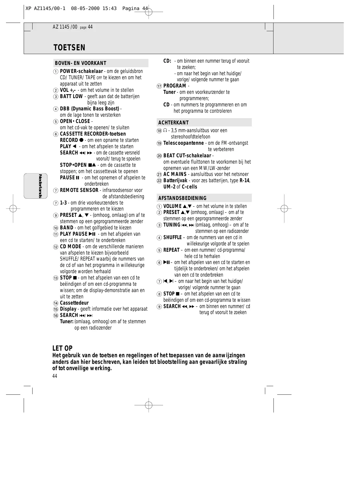 Vind de handleiding van het apparaat gratis AZ1145 PHILIPS in PDF-formaat.