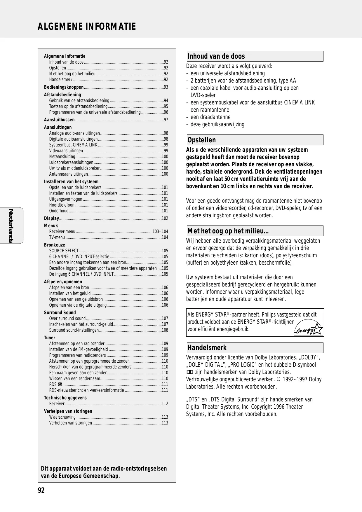 Vervaardigd onder licentie van Dolby Laboratories. "DOLBY", "DOLBY DIGITAL", "PRO LOGIC" en het dubbele D-symbol