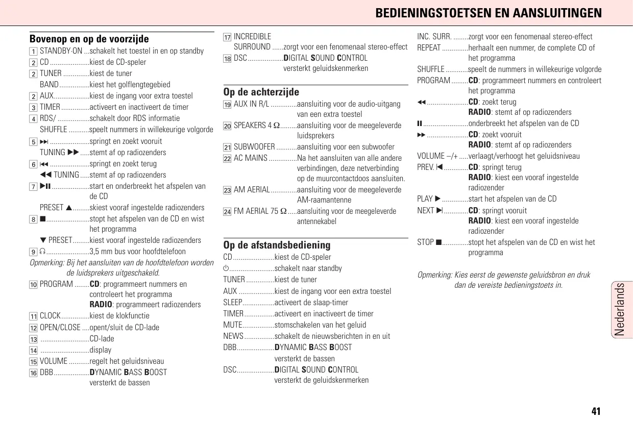 Radio Data System is een service waarme FM zenders extra informatie kennuen uitzenden. Als u een RDS-zender ontvangt, worden en de nom van de zender op het display aangegeven.