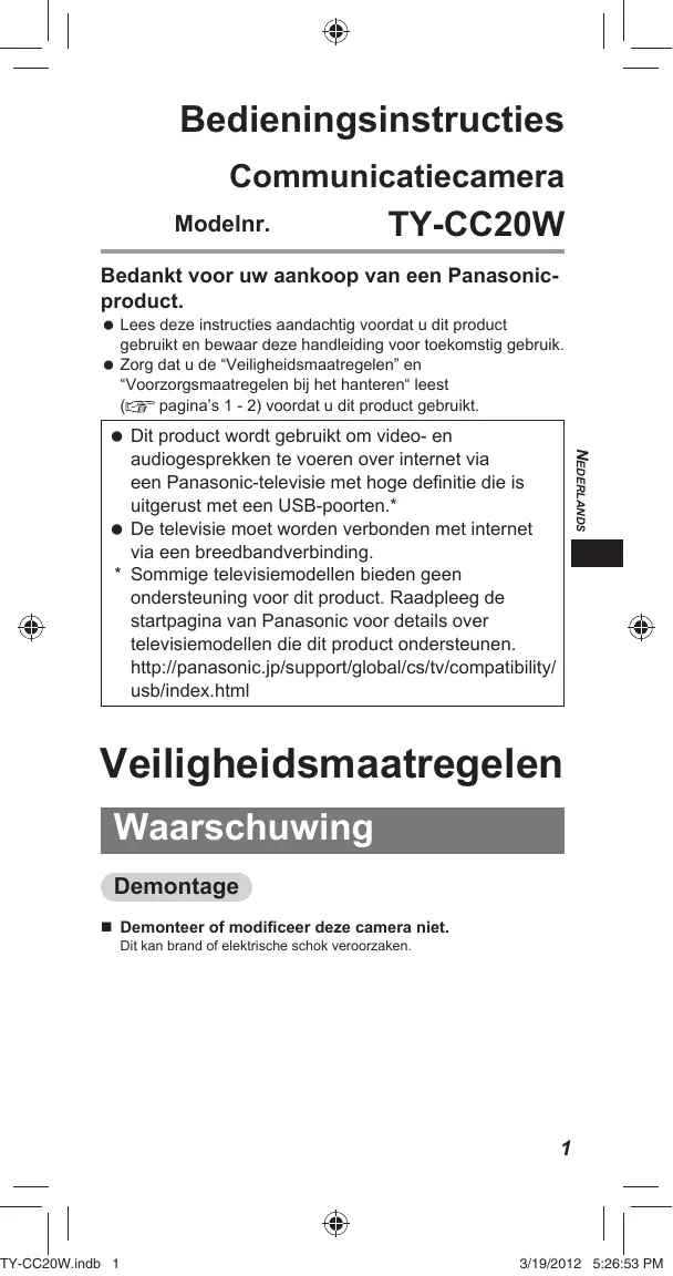 GEBRUIKSAANWIJZING TY-CC20W PANASONIC