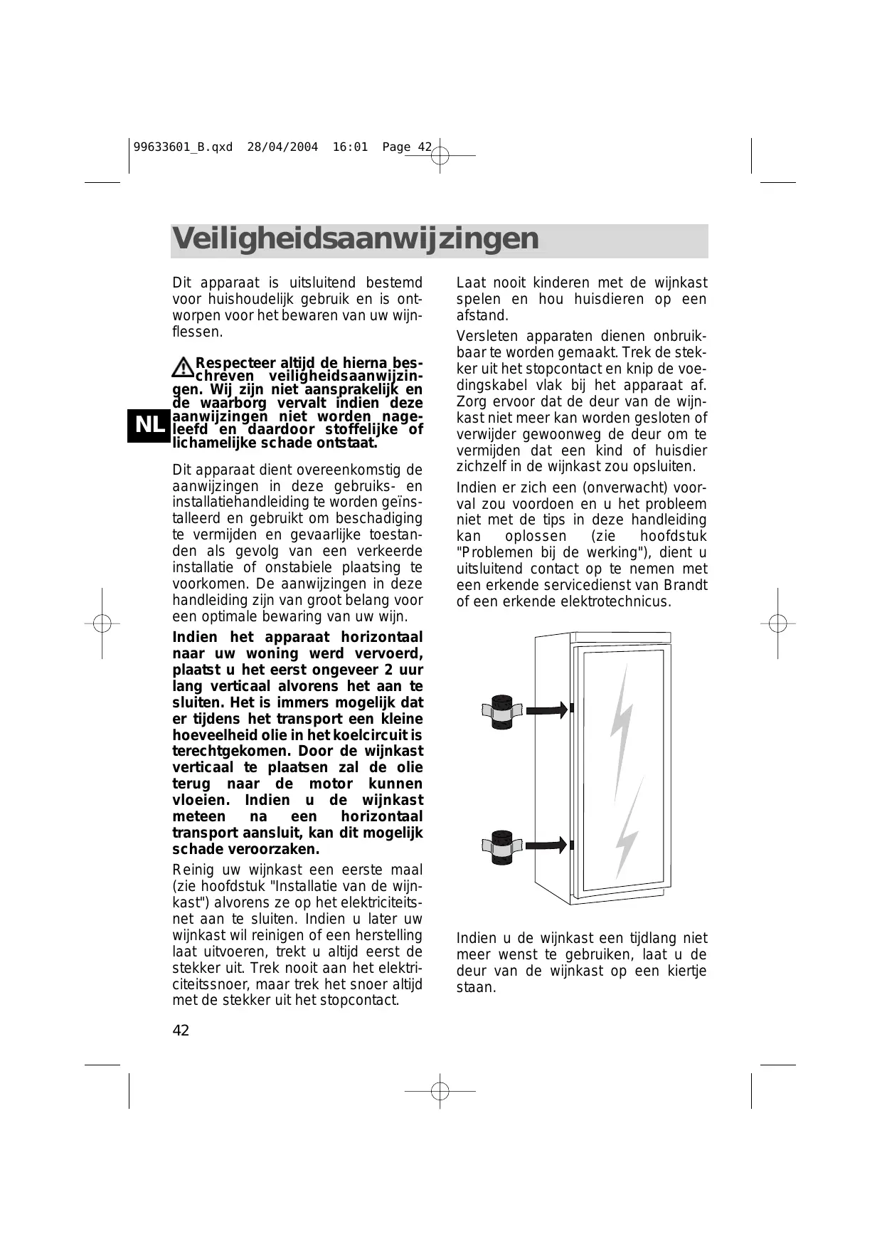 Votre appareil doit être installé et utilisé conformément aux instructions de ce guide d'installation et d'utilisation, afin de lui éviter tout dommage et d'éviter les dangers dus à son éventuelle instabilité ou à une mauvaise installation. Seul le respect de ces instructions vous permet de conserver vos vins dans de bonnes conditions.