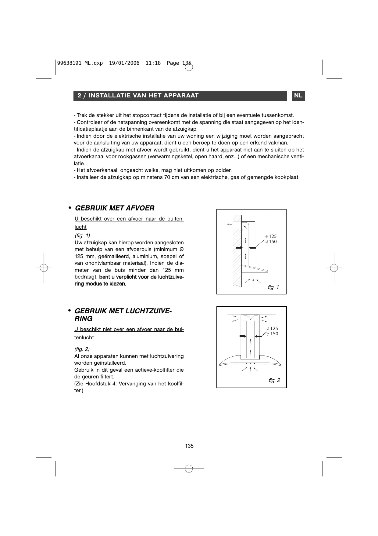 • GEBRUIK MET LUCHTZUIVERING 125 150