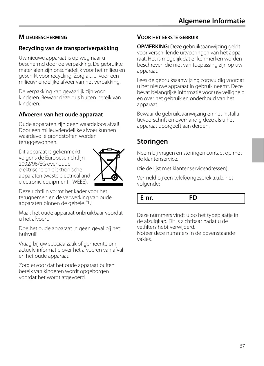 FD Deze nummers vindt u op het typeplaatje in de afzuigkap. Dit is zichtbaar nadat u de vetfilters hebt verwijderd. Noteer deze nummers in de bovenstaande vakjes.
