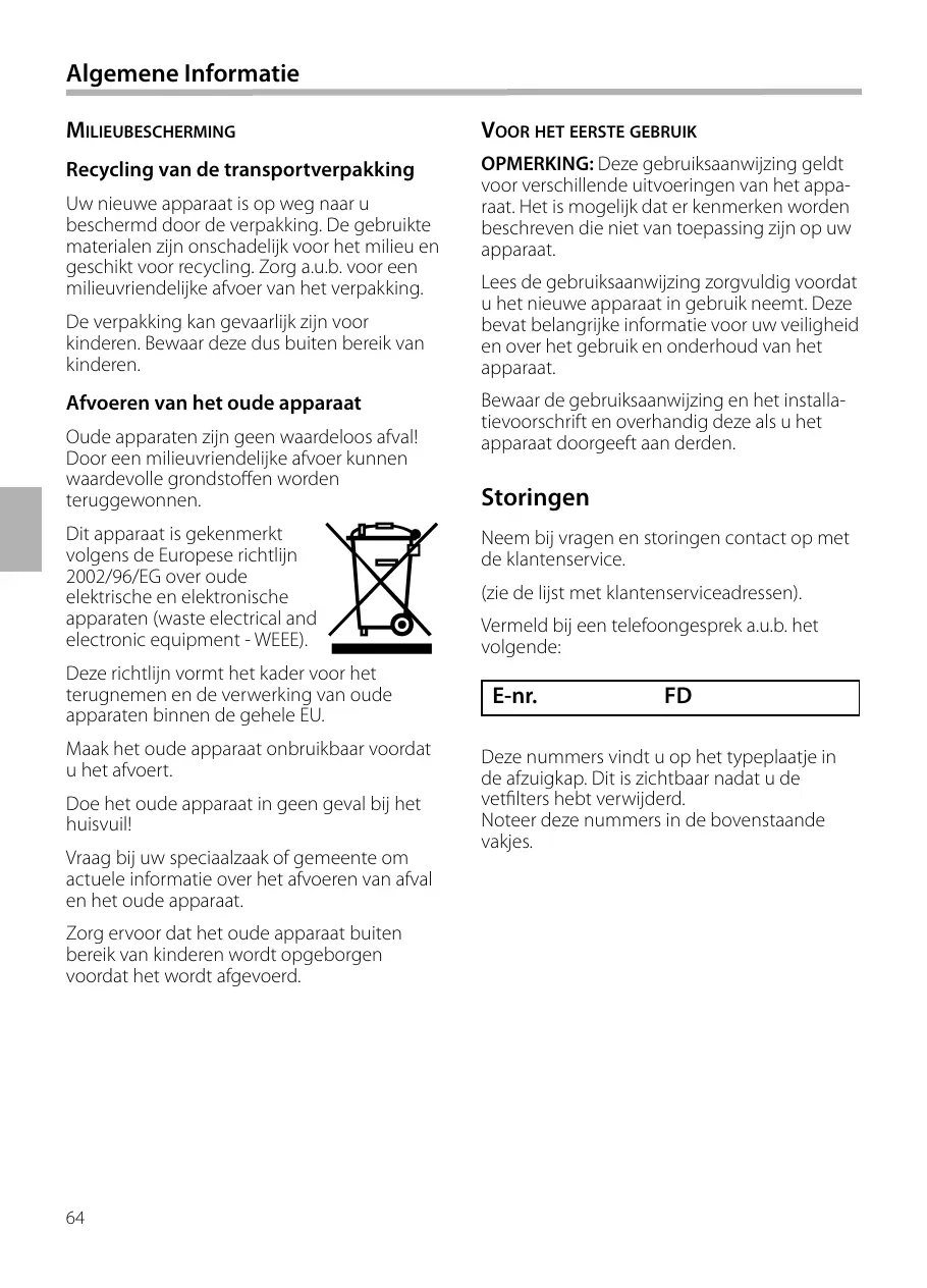 FD Deze nummers vindt u op het typeplaatje in de afzuigkap. Dit is zichtbaar nadat u de vetfilters hebt verwijderd. Noteer deze nummers in de bovenstaande vakjes.