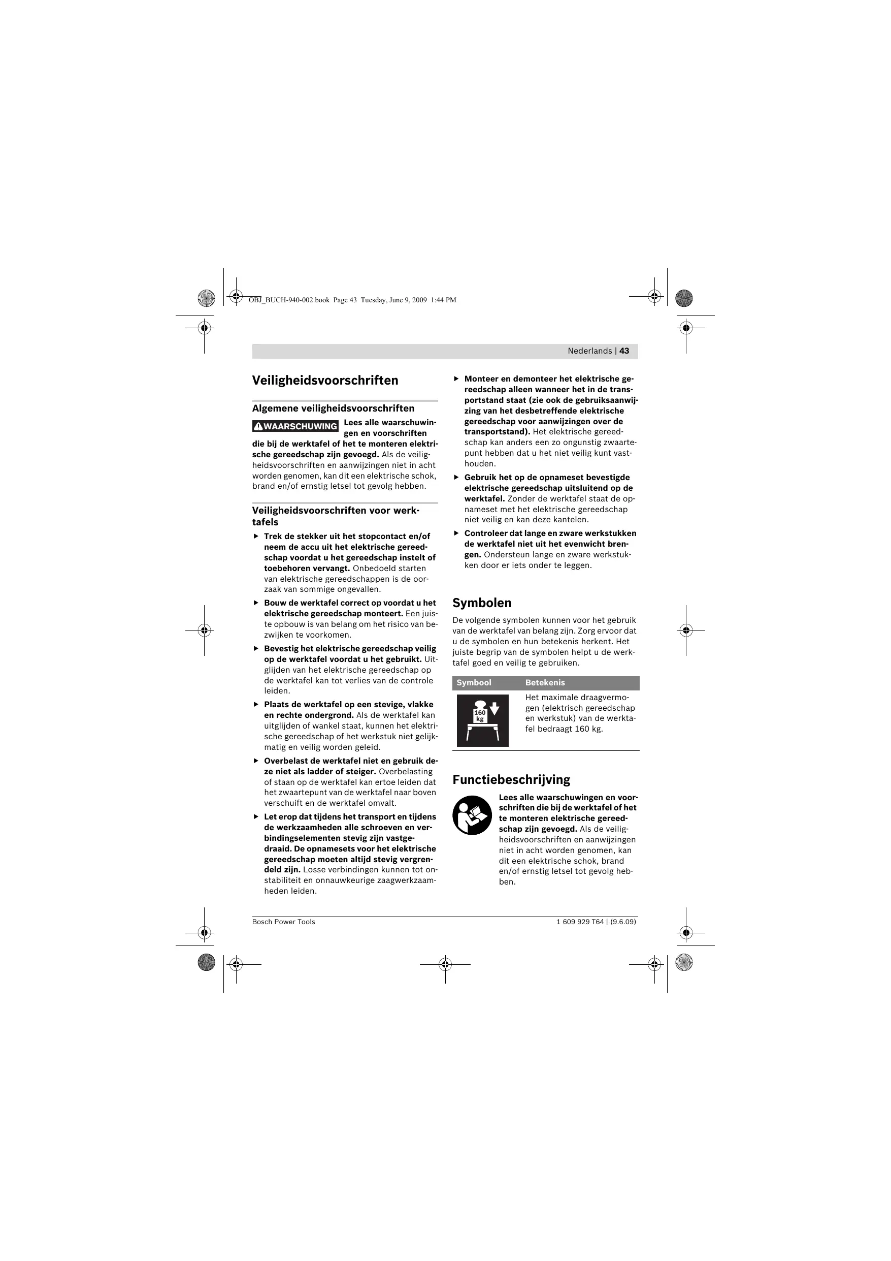 Onderhoud Mocht de werktafel ondanks zorgvuldige fabricage- en testmethoden toch defect raken, moet de reparatie door een erkende klantenservice voor Bosch elektrische gereedschappen worden uitgevoerd. Vermeld bij vragen en bestellingen van vervangingsonderdelen altijd het uit tien cijfers bestaande zaaknummer volgens het typeplaatje van de werktafel.