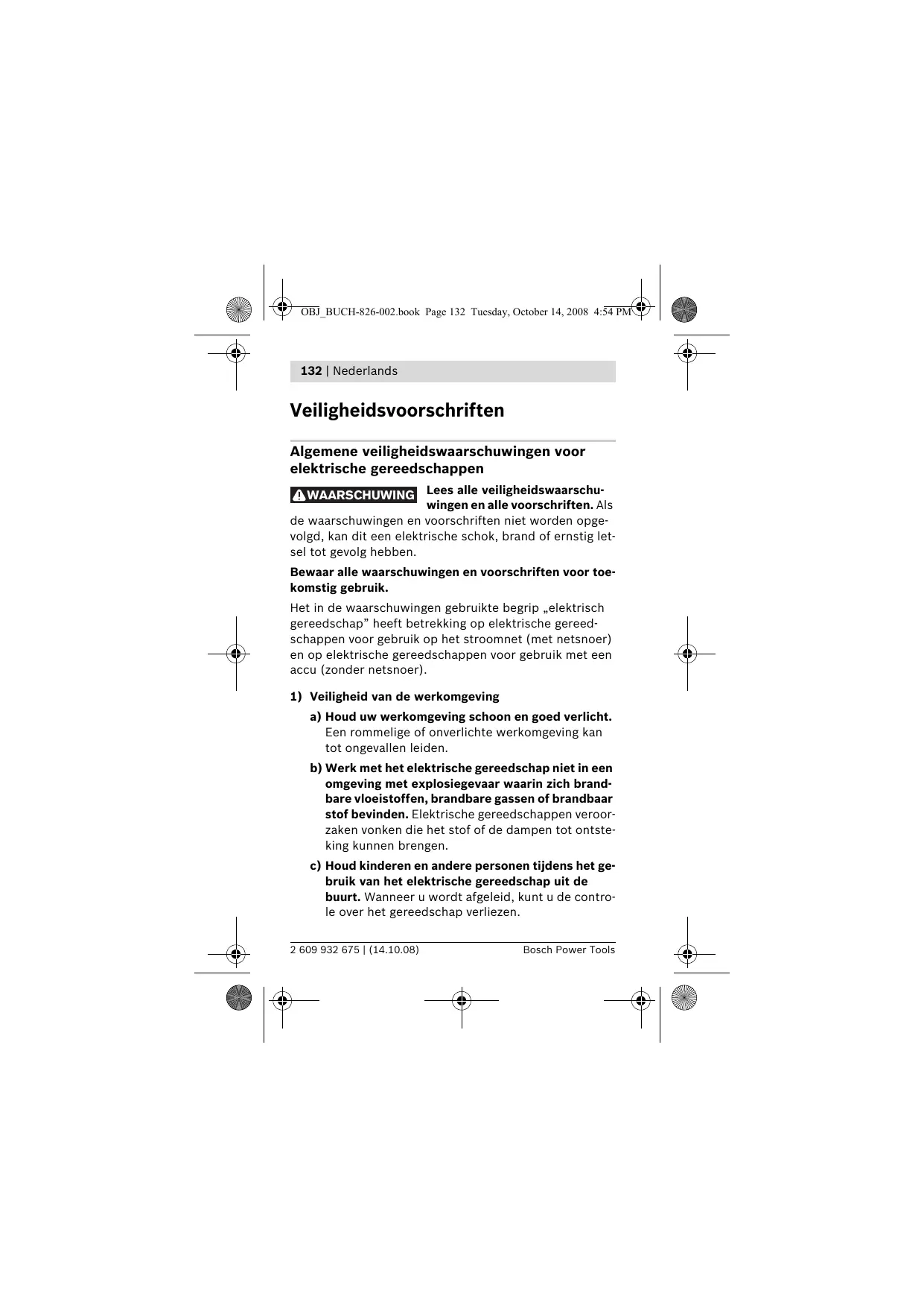Het in de waarschuwingen gebruekte begrip „elektrisch gereedschap" heeft betrekking op elektrische gereedschappen voor gebruik op het stroomnet (met netsnoer) en op elektrische gereedschappen voor gebruik met een accu (zonder netsnoer).