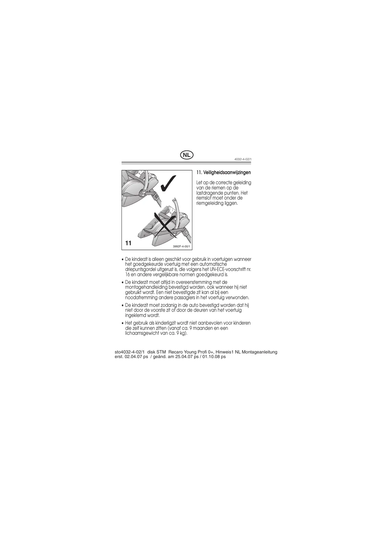 sto2806-4-05/1 disk STM Recaro Young Profi 0+, AllgemHinw1 F Montageanleitung erst. 02.09.05 gg / geänd. am 08.09.05 tk, 02.02.06 tk / 02.03.07 ps / 25.04.07 ps / 13.11.07 ps