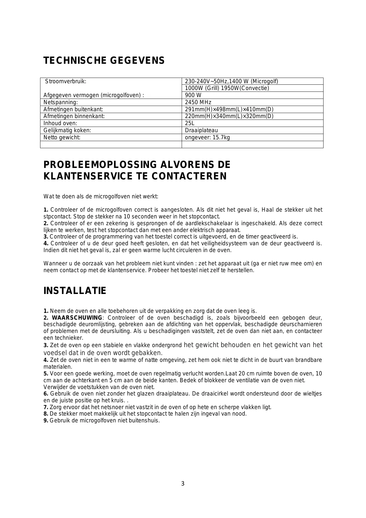- De microgolfoven mag enkel gerepareerd worden door een deskundig iemand.