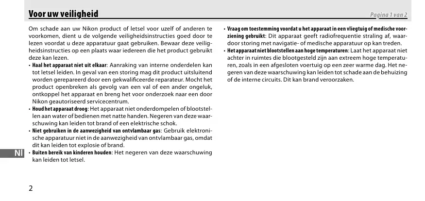 To prevent damage to your Nikon product or injury to yourself or to others, read the following safety precautions in their entirety before using this equipment. Keep these safety instructions where all those who use the product will read them.