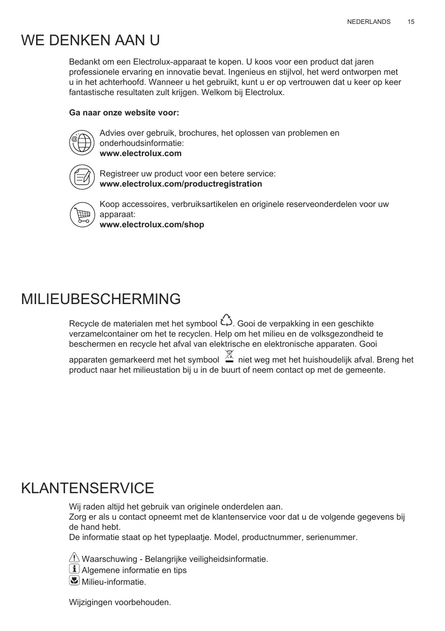 Avant de contacter le service, assurez-vous de disposer des informations suivantes : Vous trouverez ces informations sur la plaque signalétique. Modèle, PNC, numéro de série. Avertissement/Attention : consignes de sécurité. Informations générales et conseils. Informations en matière de protection de l’environnement. Sous réserve de modifications.