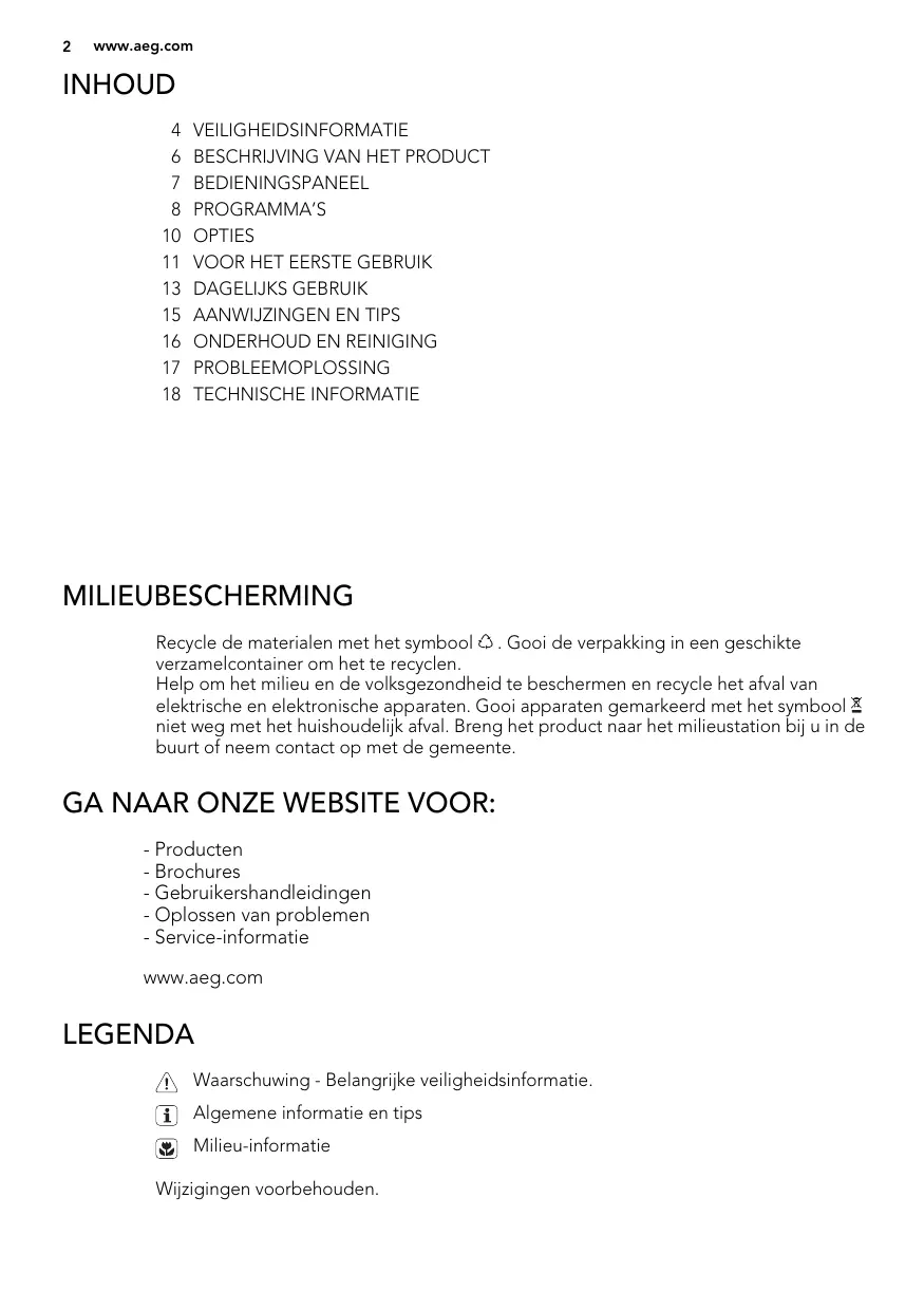 Bedankt dat u voor dit AEG product heeft gekozen. Dit apparaat is ontworpen om vele jaren uitstekend te presteren, met innovatieve technologieën die het leven gemakkelijker helpen make – functies die gewone apparaten wellicht Niet hebben. Neem eenaar minuten deijd om het door te lezen zodat u er optimaal van kunt profiteren.