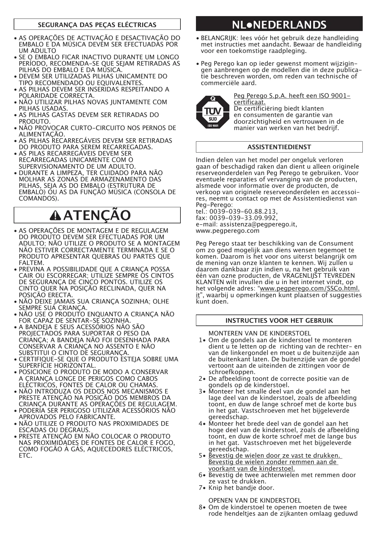 GEBRUIKSAANWIJZING PRIMA PAPPA DONDOLINO PEG PEREGO
