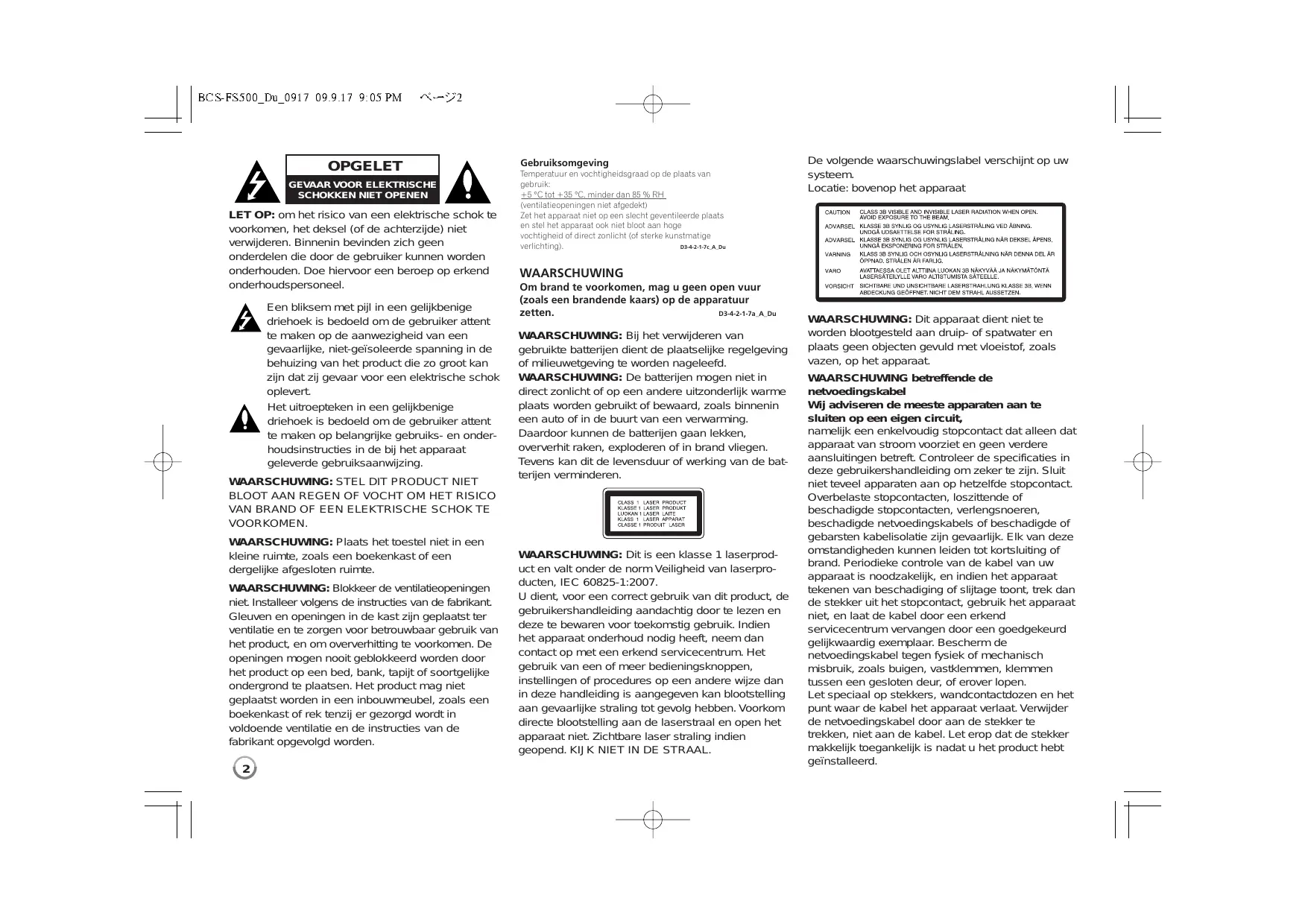 GEBRUIKSAANWIJZING BCS-FS500 PIONEER