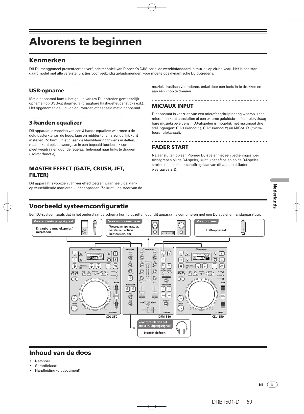 FWD MULTI PLAYER PHONES CDJ-350 DJM-350 CDJ-350 Voor controle van het audio-in/uitgangssignaal Hoofdtelefoon Inhoud van de doos
