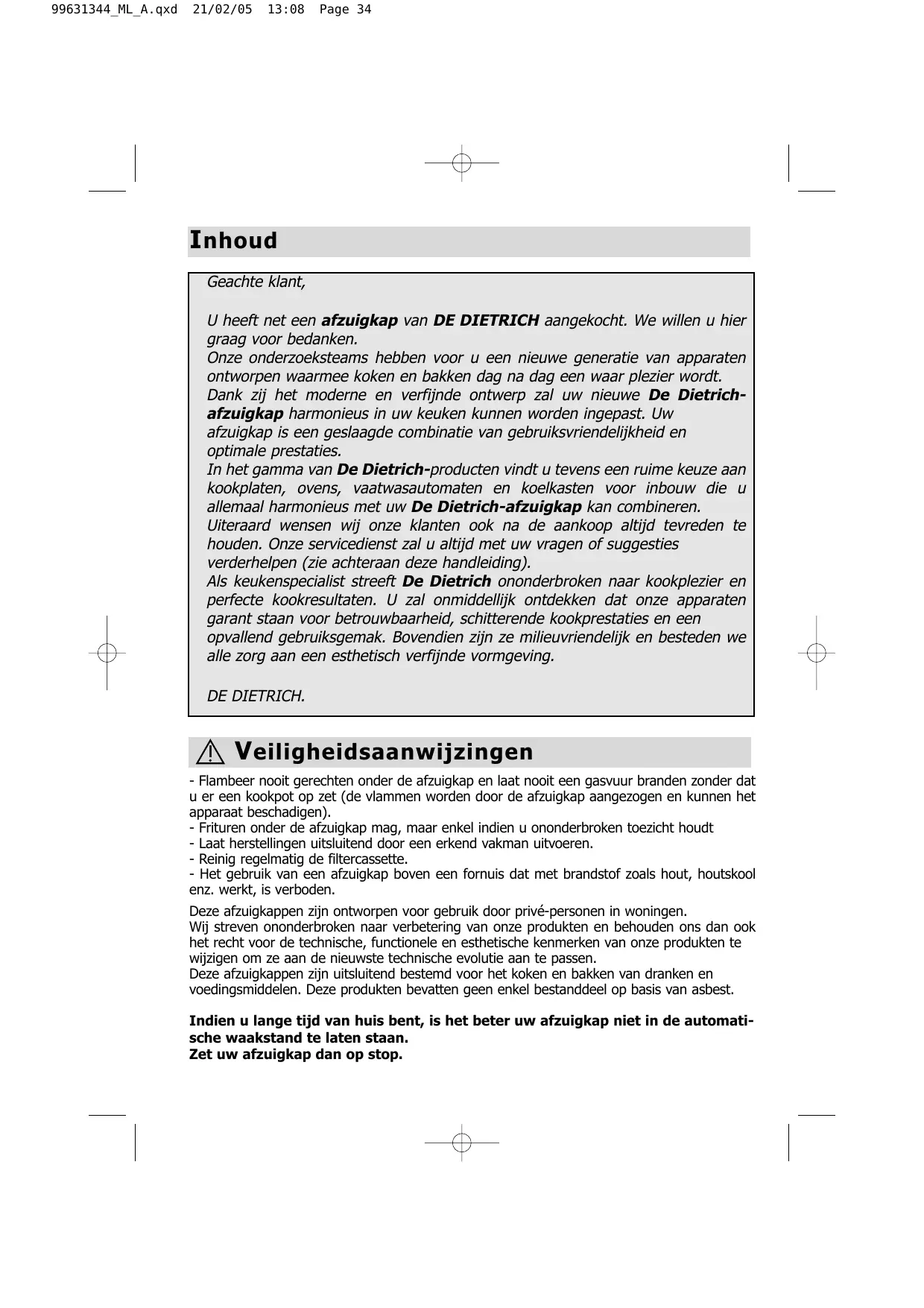 Deze afluigkappen zijnuitsluitendbestemd voor het koken en bakken van dranken en voedingsmiddelen. Deze Produkten bevatten geen enkel bestanddeel op basis van asbest.