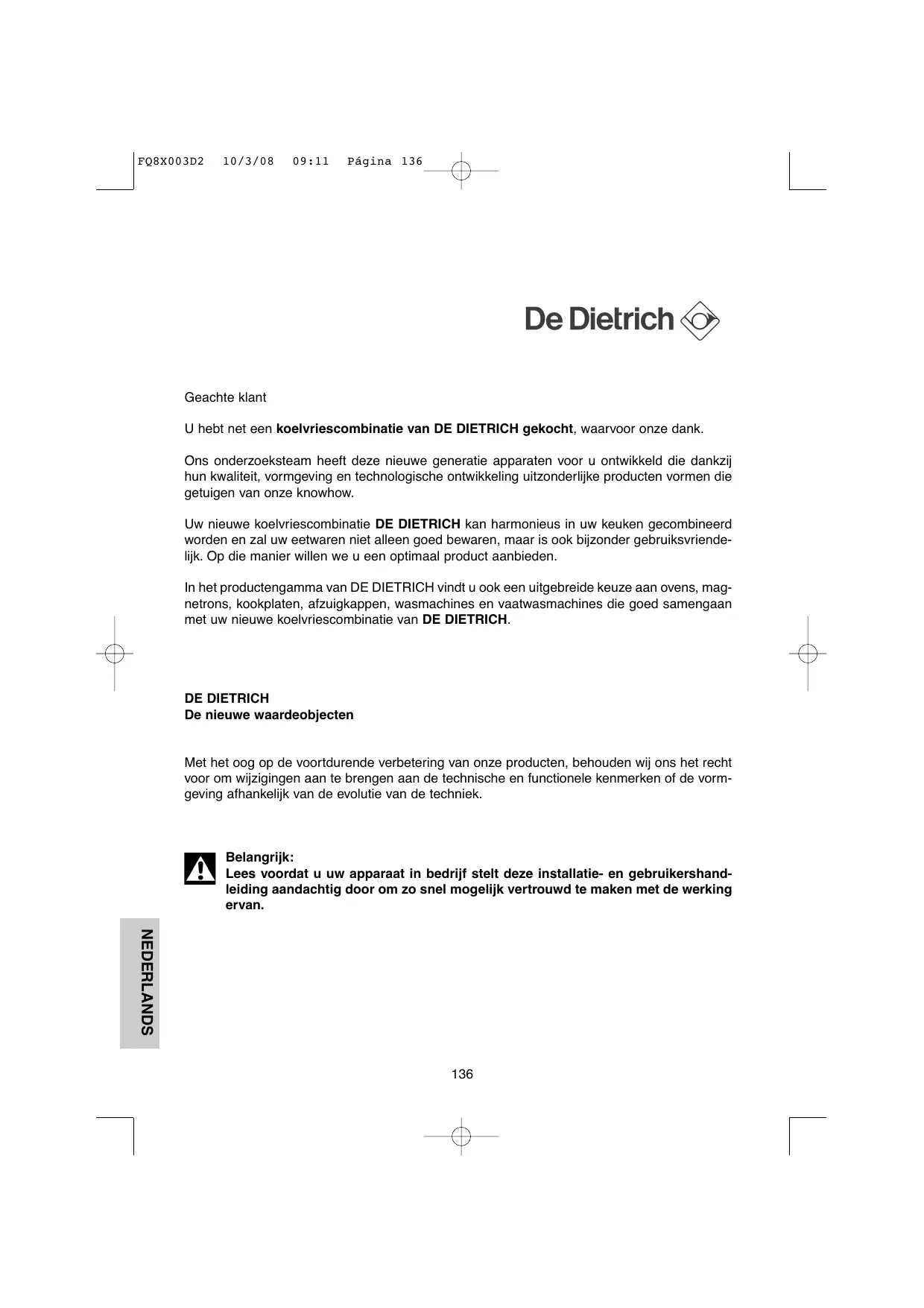 Vind de handleiding van het apparaat gratis DKP825W DE DIETRICH in PDF-formaat.