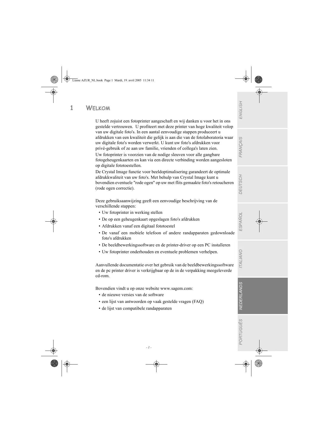 ESPANOL DEUTSCH FRANÇAIS ITALIANO NEDERLANDS PORTUGUËS PSS $ [SP Tasse AZUR NLbook Page 2 Mardi, 19. avril 2005 11:34 11 ÿ
