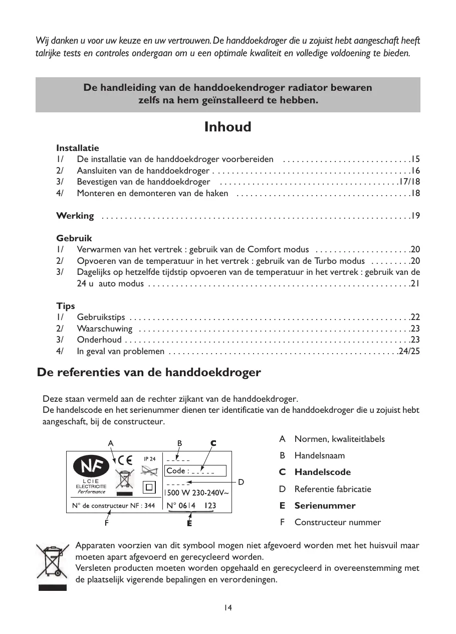 Le Code commercial et le Numéro de série identifient auprès du constructeur le radiateur sècheserviettes que vous venez d’acquérir. A Normes, labels de qualité